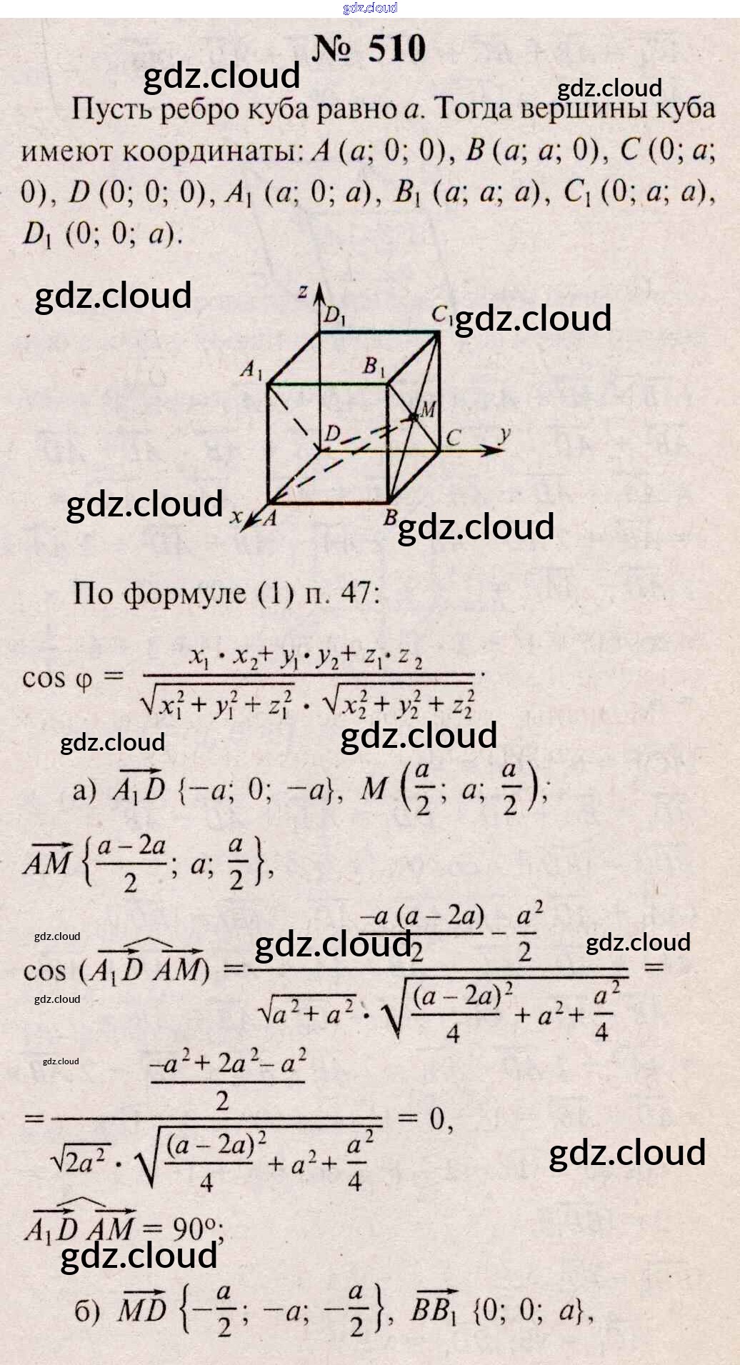 Ответ на задание 510 Учебник Геометрия  за 10, 11 (десятый, одиннадцатый) класс Атанасян, Бутузов, Кадомцев, Киселева, Позняк  Базовый и углубленный уровень 2015, 2023