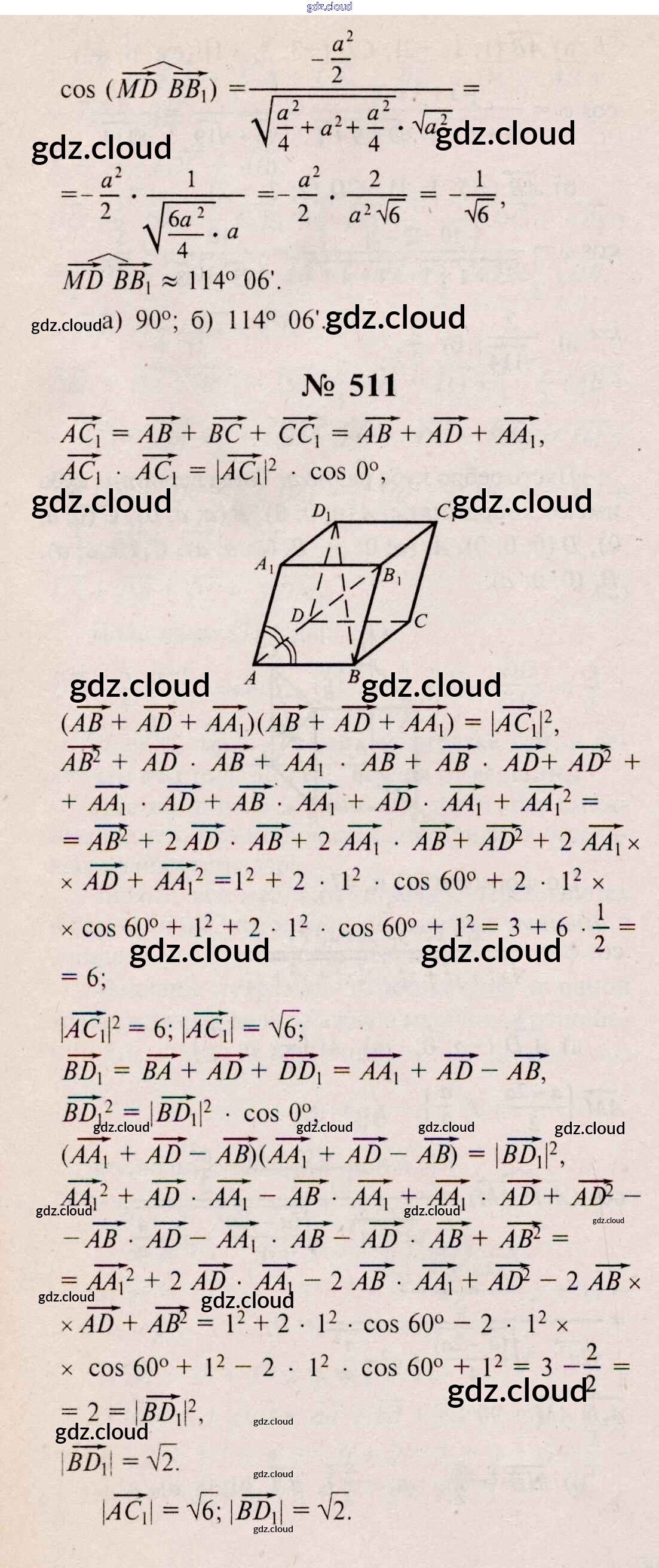 Ответ на задание 511 Учебник Геометрия  за 10, 11 (десятый, одиннадцатый) класс Атанасян, Бутузов, Кадомцев, Киселева, Позняк  Базовый и углубленный уровень 2015, 2023
