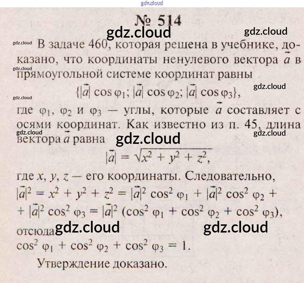 Ответ на задание 514 Учебник Геометрия  за 10, 11 (десятый, одиннадцатый) класс Атанасян, Бутузов, Кадомцев, Киселева, Позняк  Базовый и углубленный уровень 2015, 2023