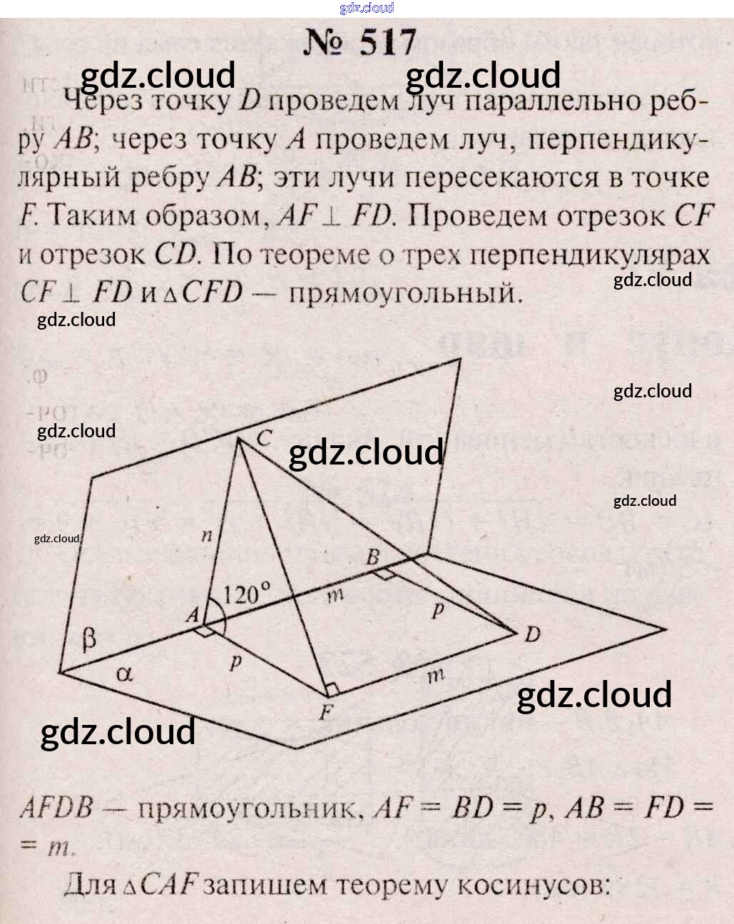 Ответ на задание 517 Учебник Геометрия  за 10, 11 (десятый, одиннадцатый) класс Атанасян, Бутузов, Кадомцев, Киселева, Позняк  Базовый и углубленный уровень 2015, 2023