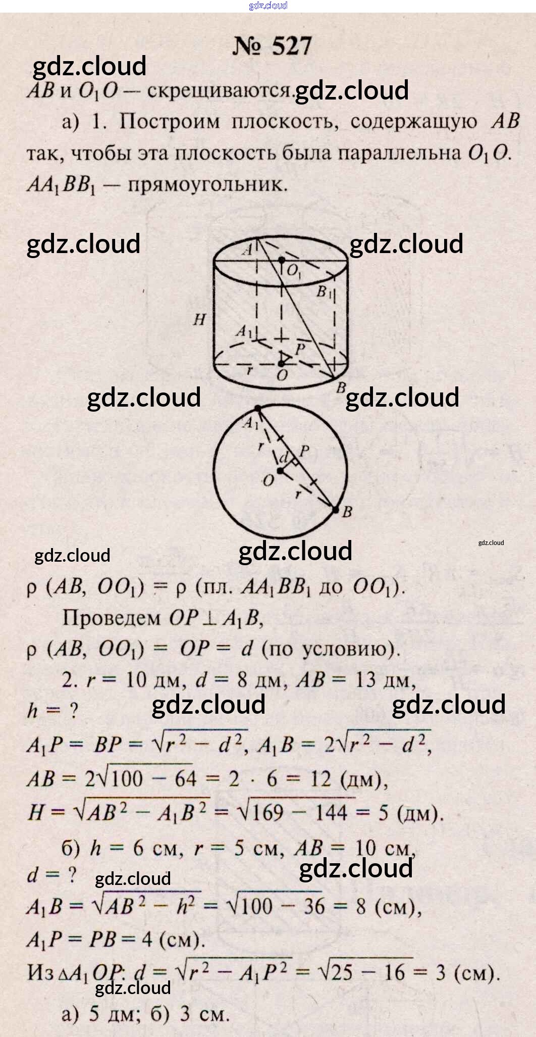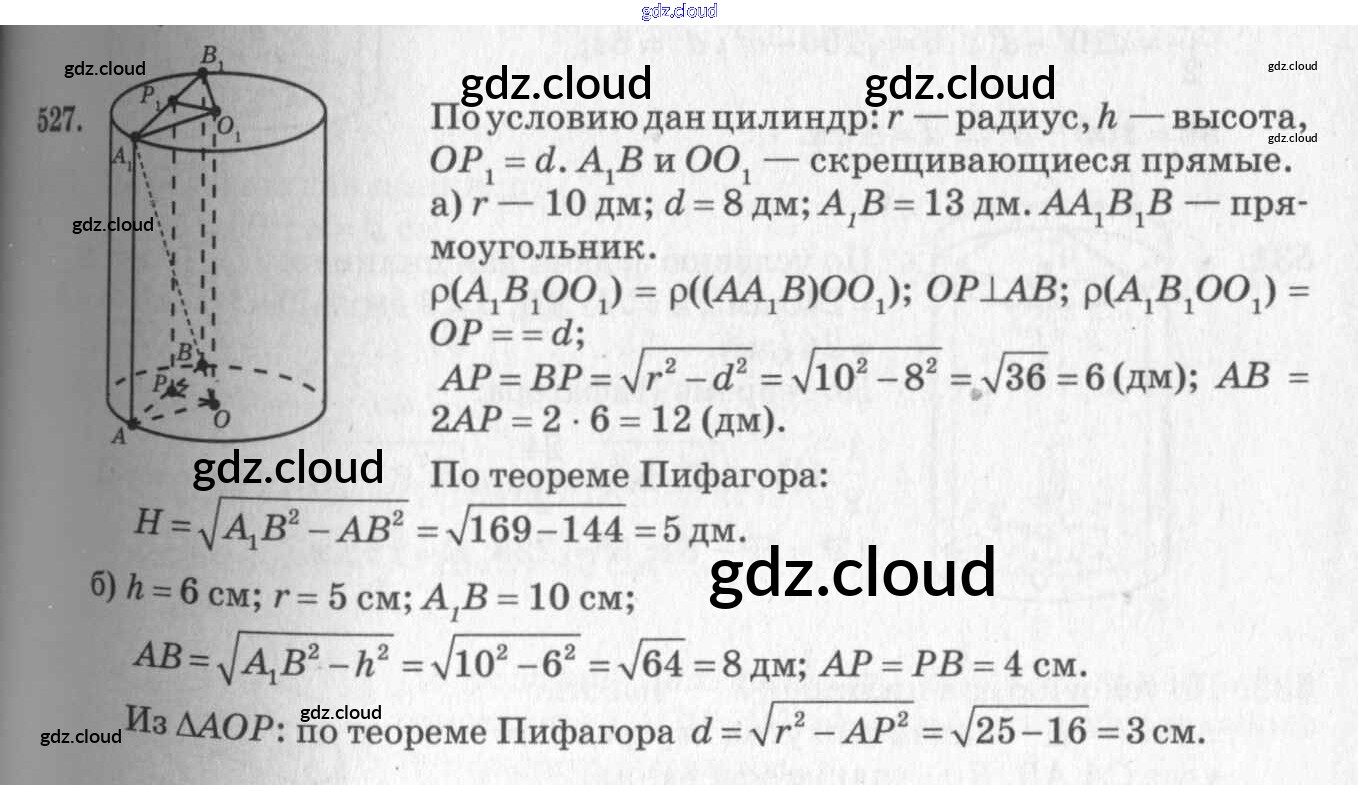 Ответ на задание 527 Учебник Геометрия  за 10, 11 (десятый, одиннадцатый) класс Атанасян, Бутузов, Кадомцев, Киселева, Позняк  Базовый и углубленный уровень 2015, 2023