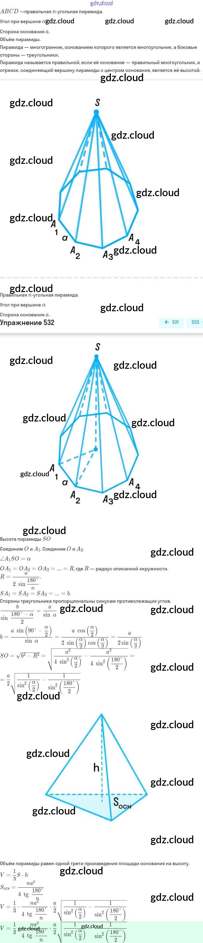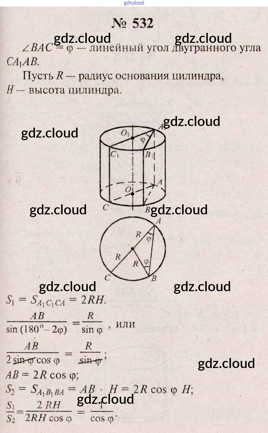 Ответ на задание 532 Учебник Геометрия  за 10, 11 (десятый, одиннадцатый) класс Атанасян, Бутузов, Кадомцев, Киселева, Позняк  Базовый и углубленный уровень 2015, 2023