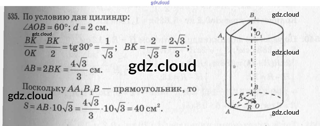 Ответ на задание 535 Учебник Геометрия  за 10, 11 (десятый, одиннадцатый) класс Атанасян, Бутузов, Кадомцев, Киселева, Позняк  Базовый и углубленный уровень 2015, 2023