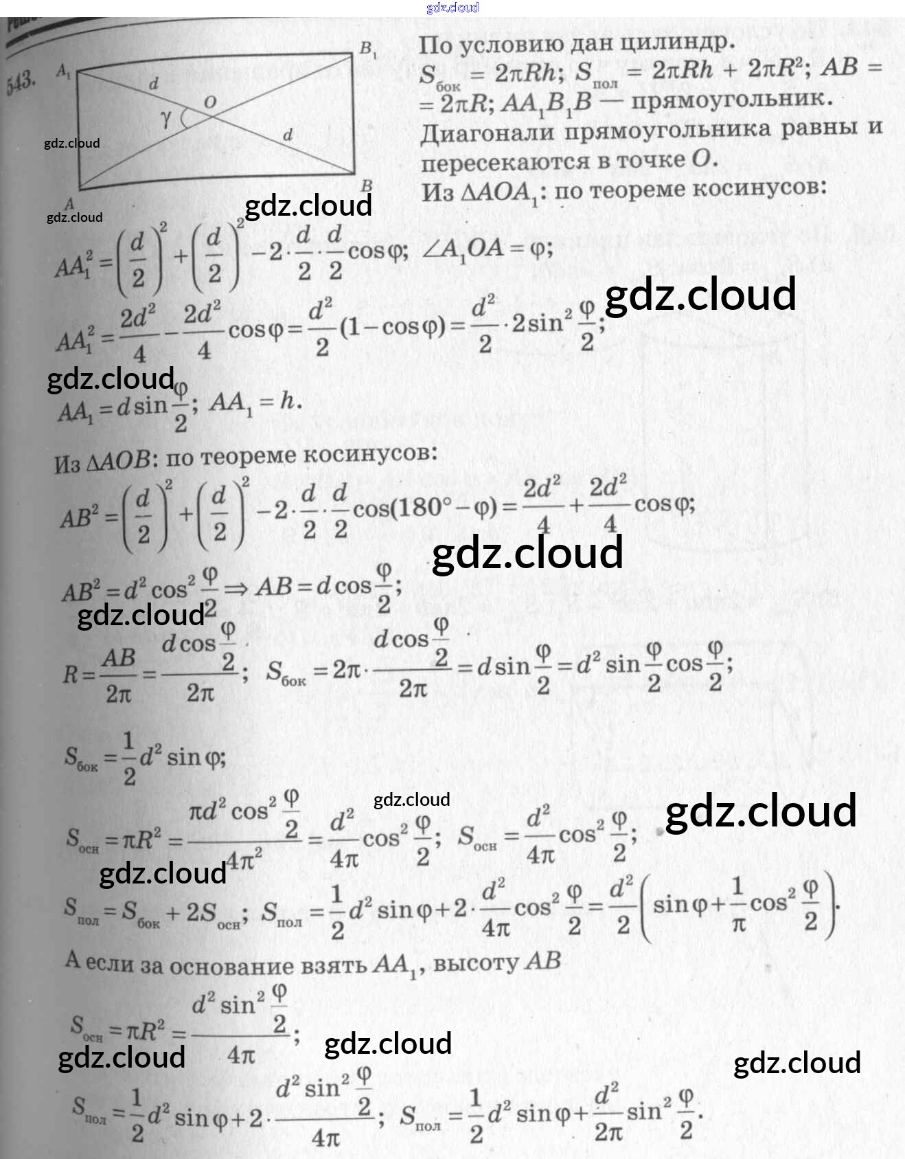 Ответ на задание 543 Учебник Геометрия  за 10, 11 (десятый, одиннадцатый) класс Атанасян, Бутузов, Кадомцев, Киселева, Позняк  Базовый и углубленный уровень 2015, 2023