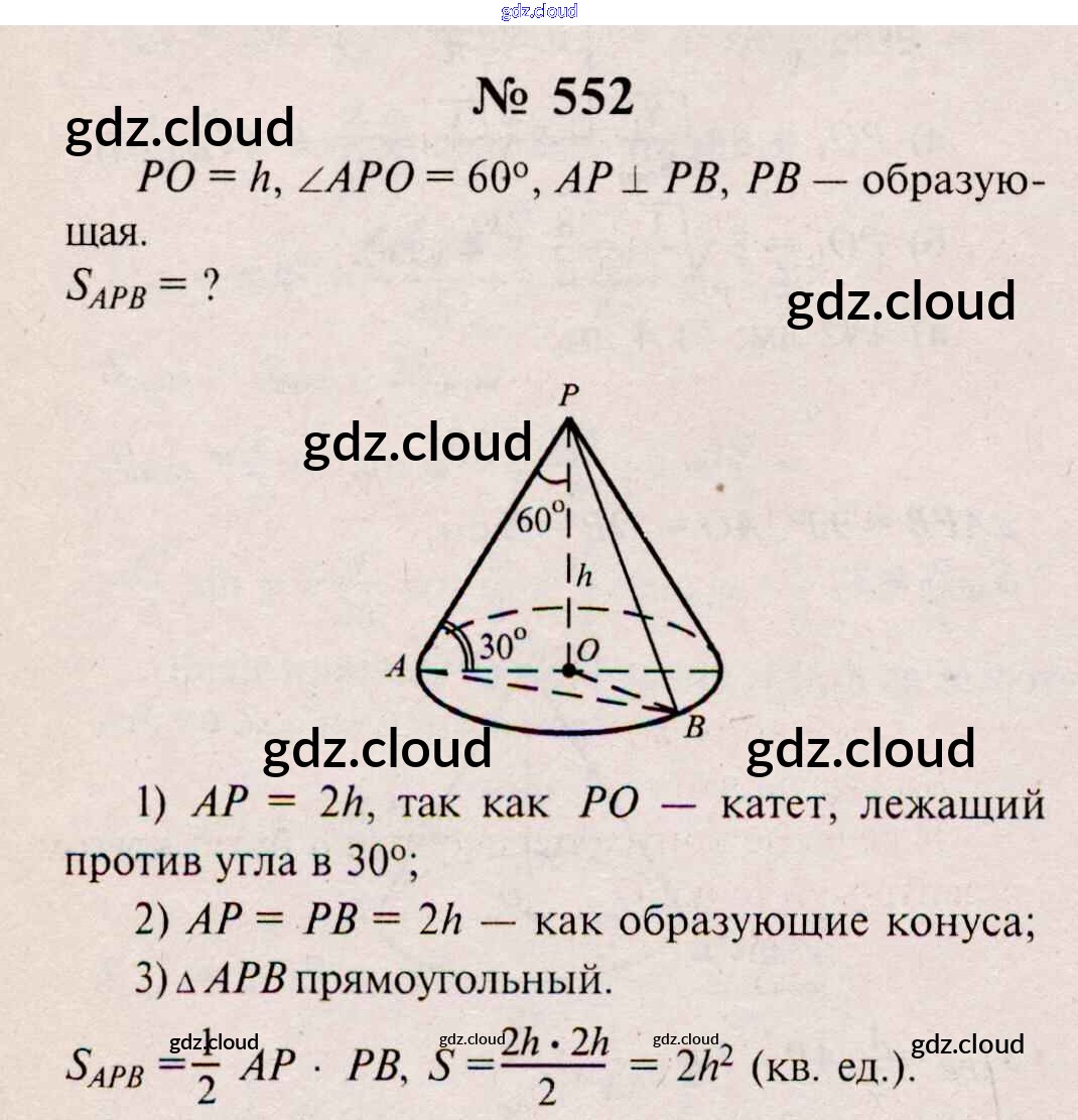Ответ на задание 552 Учебник Геометрия  за 10, 11 (десятый, одиннадцатый) класс Атанасян, Бутузов, Кадомцев, Киселева, Позняк  Базовый и углубленный уровень 2015, 2023