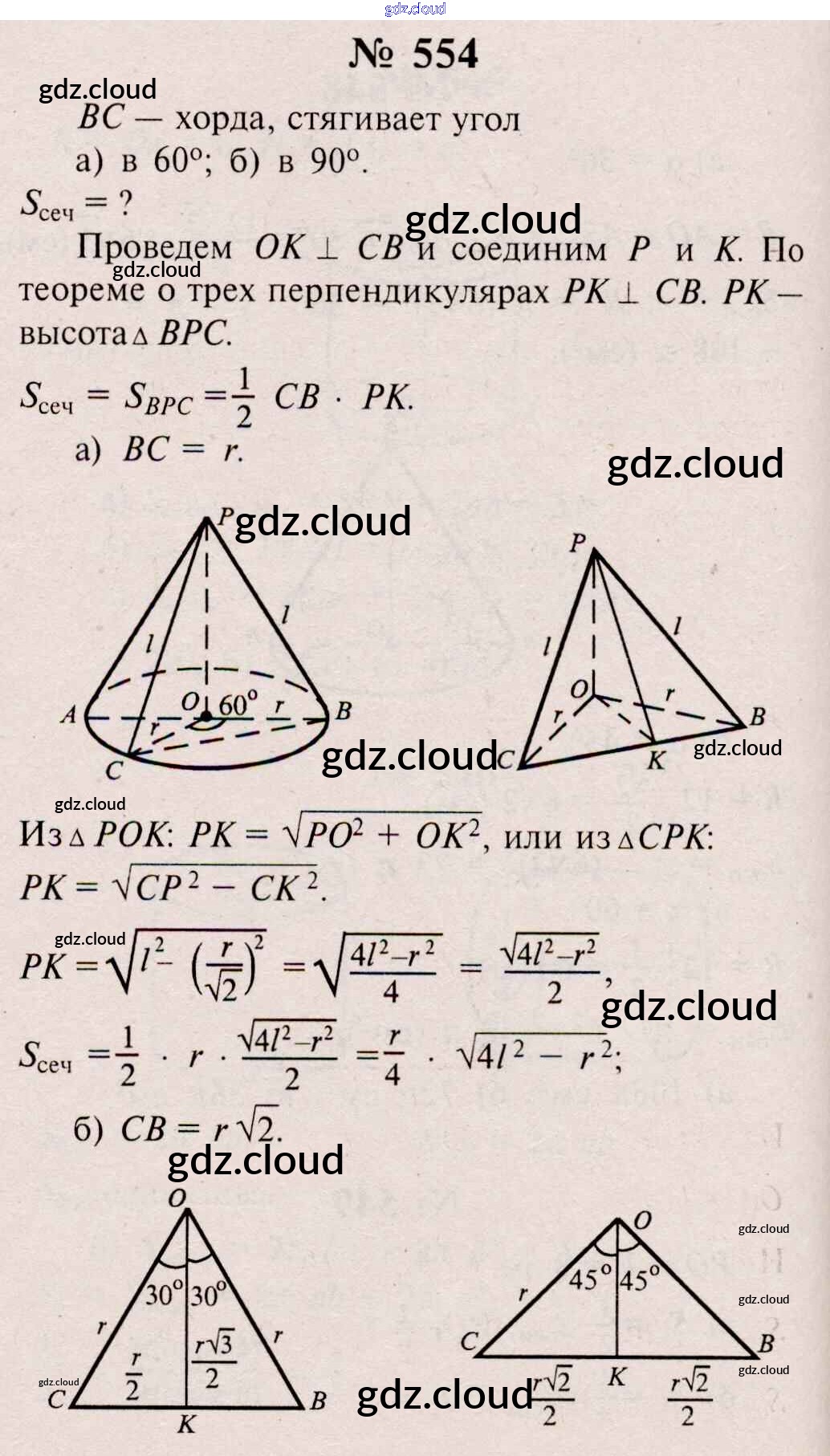 Ответ на задание 554 Учебник Геометрия  за 10, 11 (десятый, одиннадцатый) класс Атанасян, Бутузов, Кадомцев, Киселева, Позняк  Базовый и углубленный уровень 2015, 2023