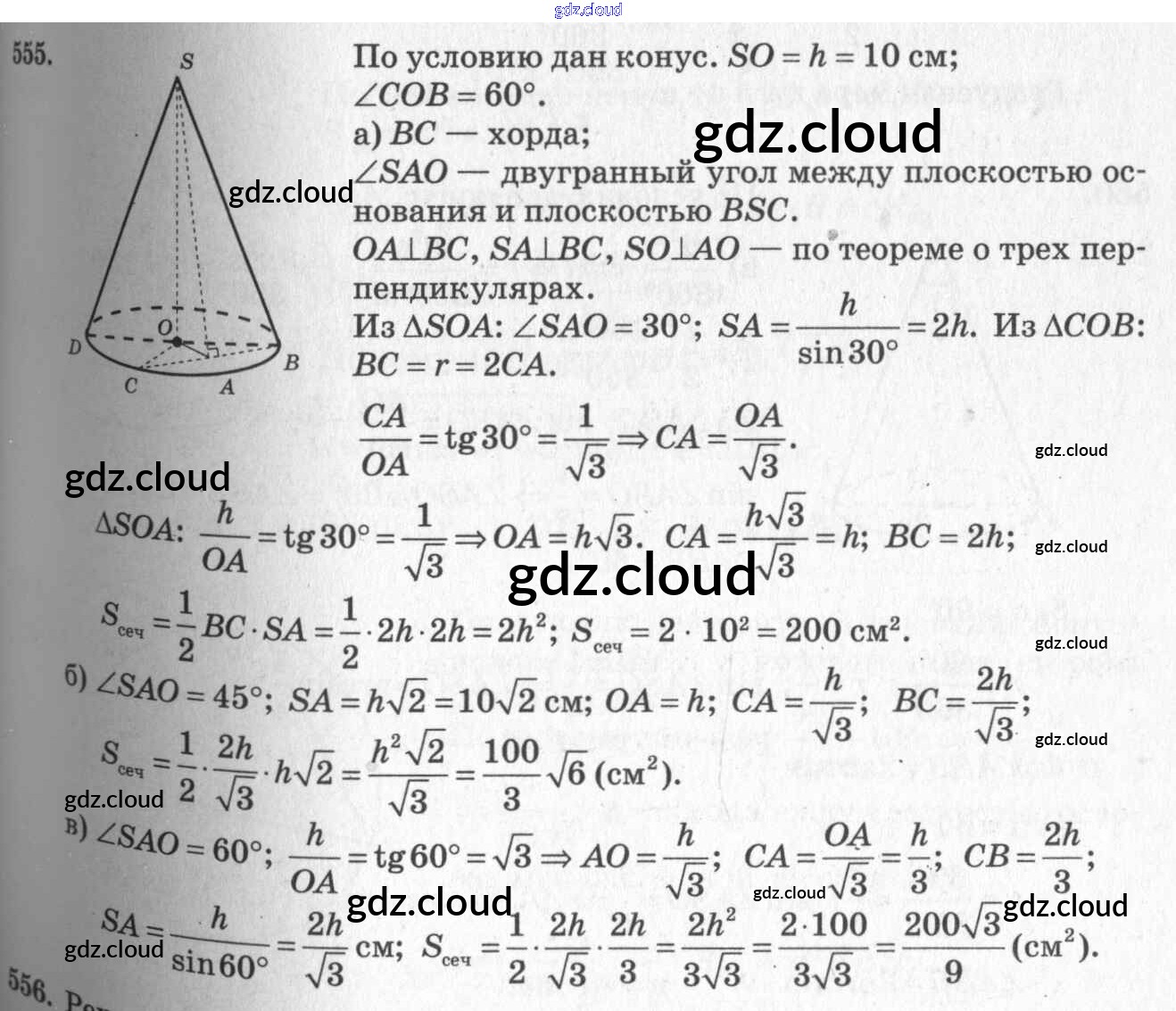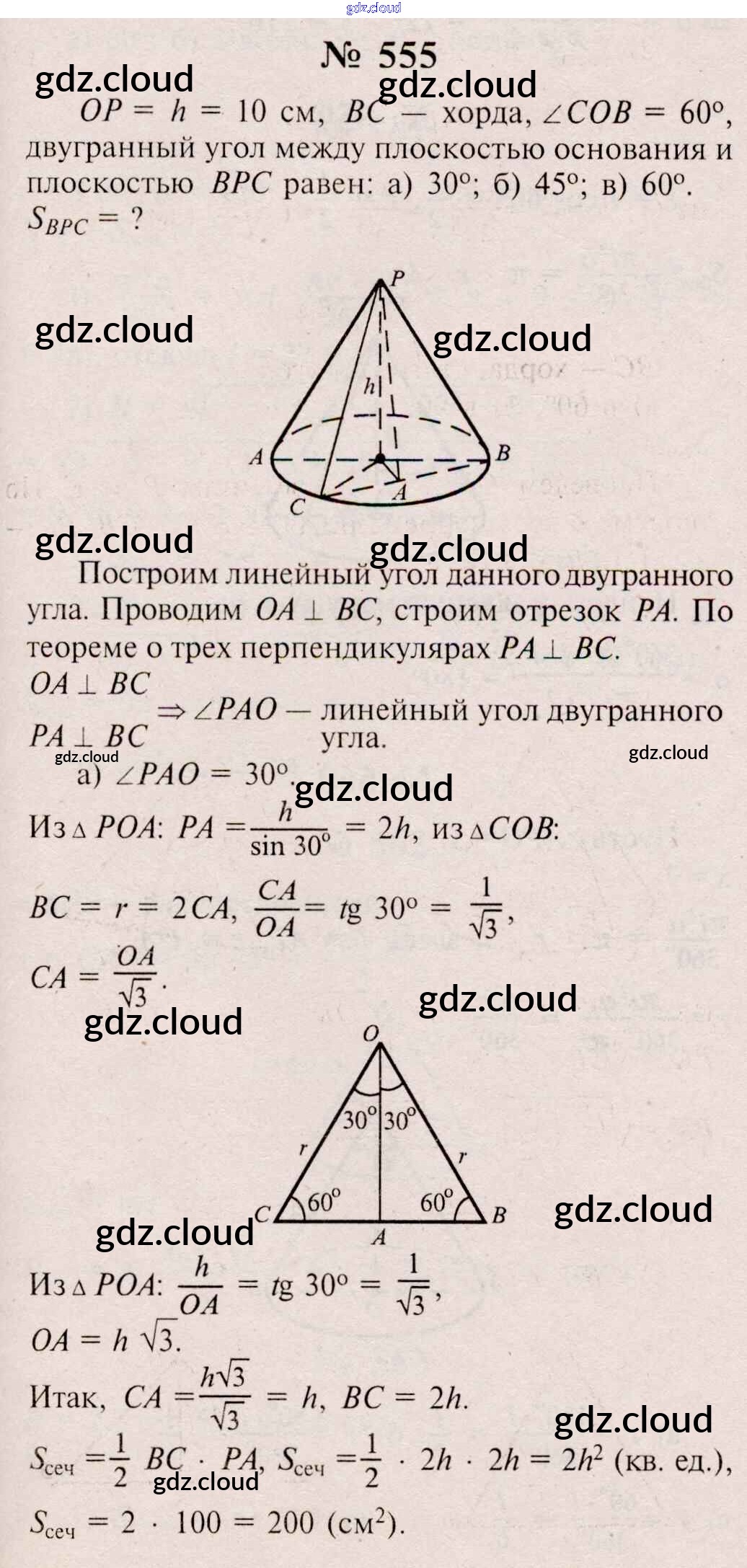 Ответ на задание 555 Учебник Геометрия  за 10, 11 (десятый, одиннадцатый) класс Атанасян, Бутузов, Кадомцев, Киселева, Позняк  Базовый и углубленный уровень 2015, 2023