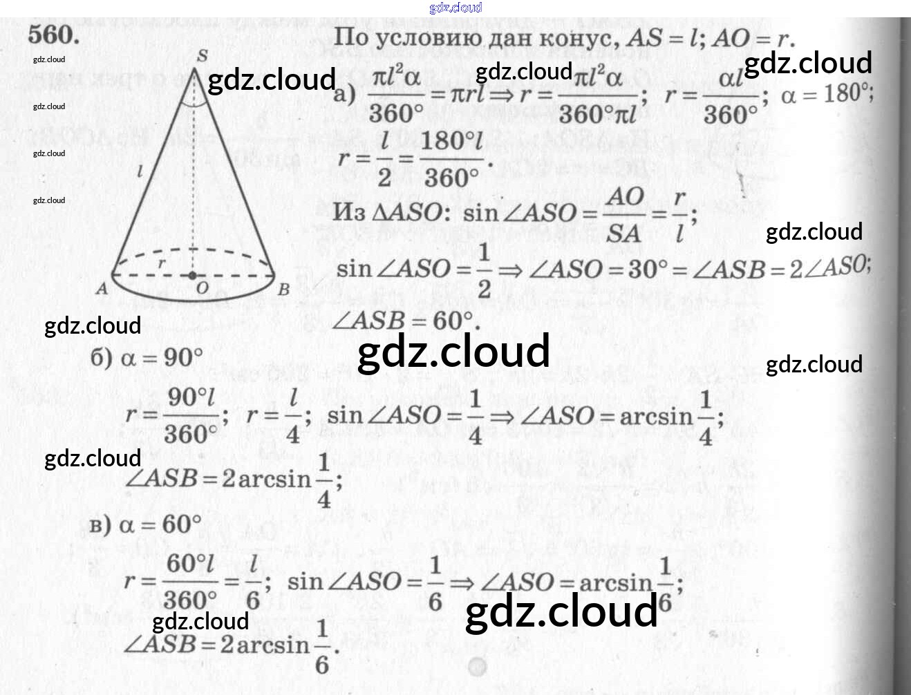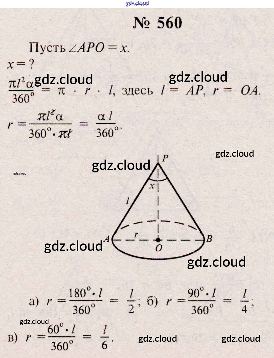 Ответ на задание 560 Учебник Геометрия  за 10, 11 (десятый, одиннадцатый) класс Атанасян, Бутузов, Кадомцев, Киселева, Позняк  Базовый и углубленный уровень 2015, 2023