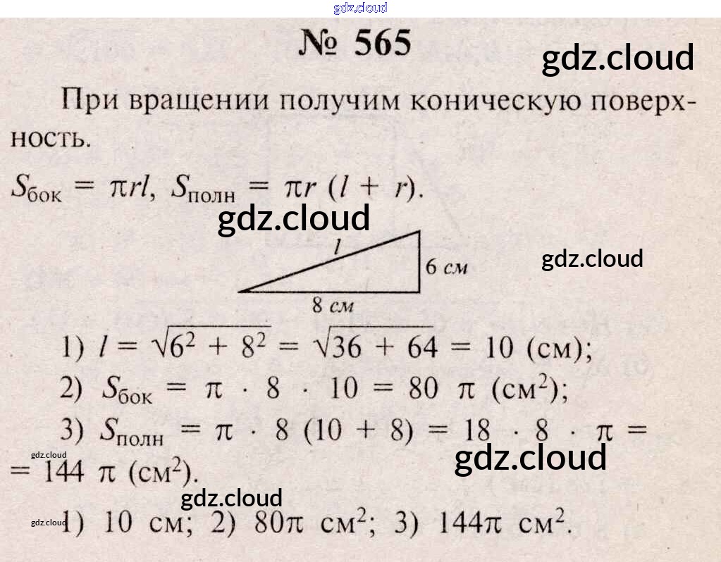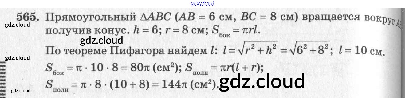 Ответ на задание 565 Учебник Геометрия  за 10, 11 (десятый, одиннадцатый) класс Атанасян, Бутузов, Кадомцев, Киселева, Позняк  Базовый и углубленный уровень 2015, 2023