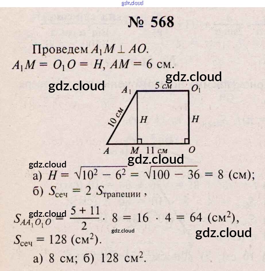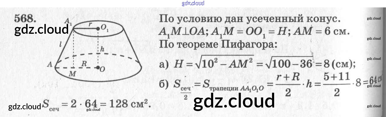 Ответ на задание 568 Учебник Геометрия  за 10, 11 (десятый, одиннадцатый) класс Атанасян, Бутузов, Кадомцев, Киселева, Позняк  Базовый и углубленный уровень 2015, 2023