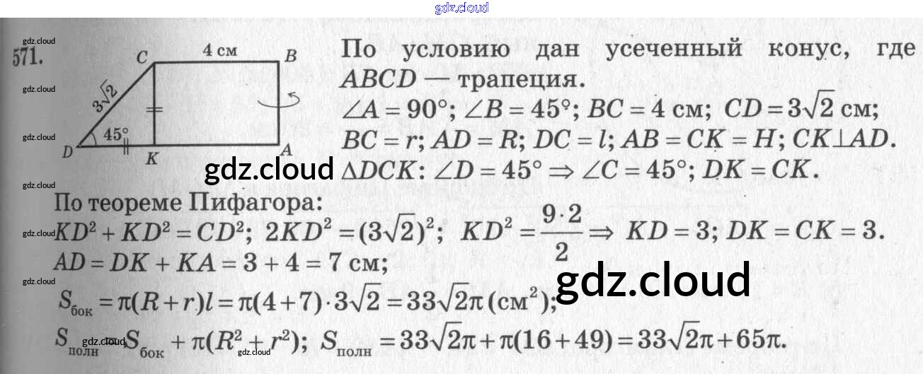 Ответ на задание 571 Учебник Геометрия  за 10, 11 (десятый, одиннадцатый) класс Атанасян, Бутузов, Кадомцев, Киселева, Позняк  Базовый и углубленный уровень 2015, 2023
