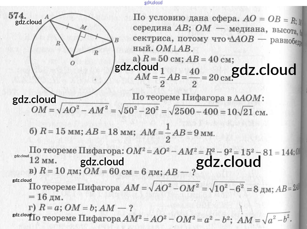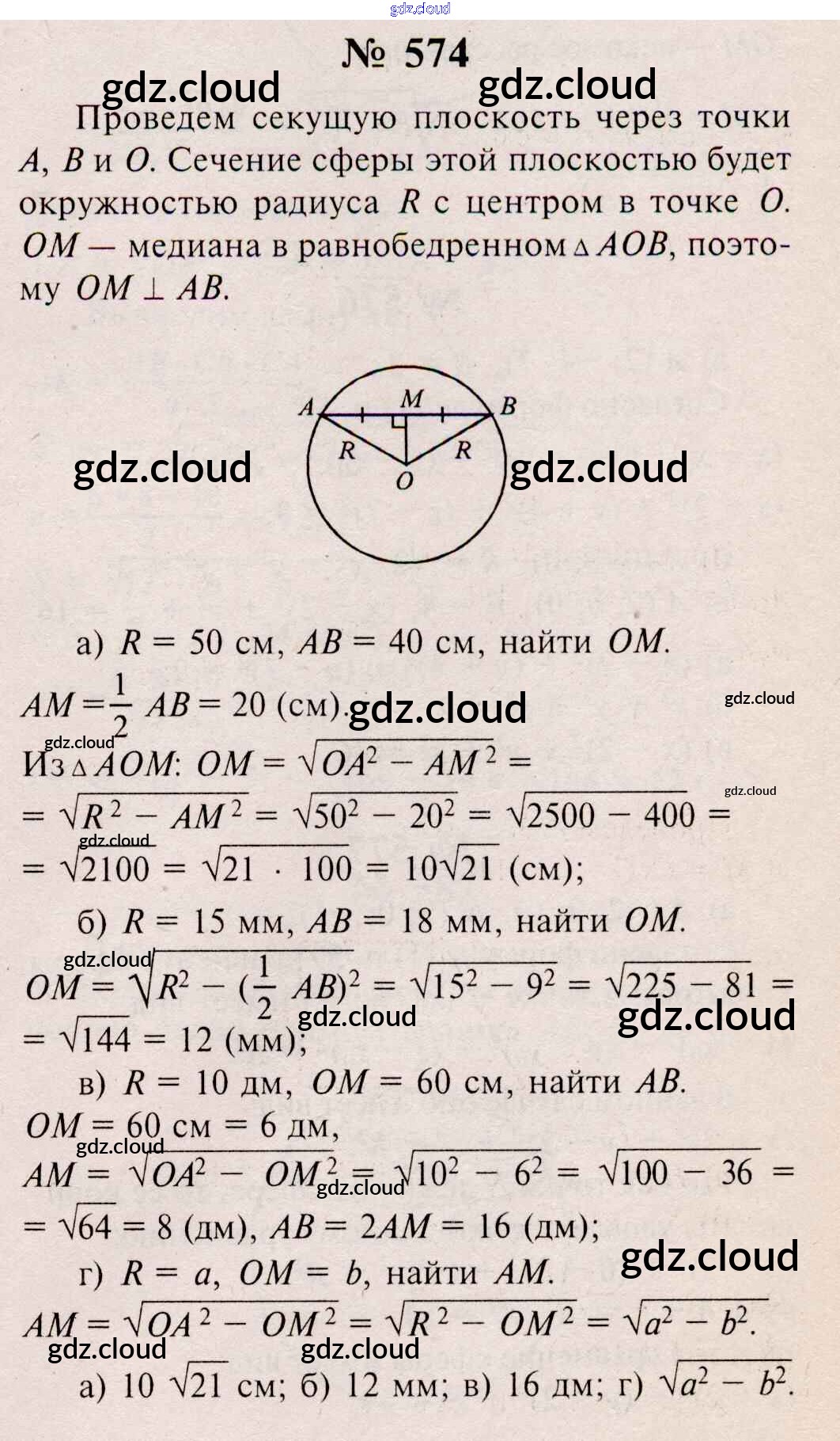 Ответ на задание 574 Учебник Геометрия  за 10, 11 (десятый, одиннадцатый) класс Атанасян, Бутузов, Кадомцев, Киселева, Позняк  Базовый и углубленный уровень 2015, 2023