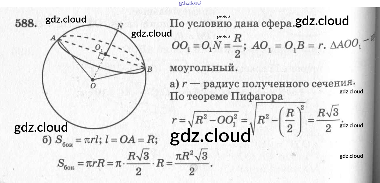 Ответ на задание 588 Учебник Геометрия  за 10, 11 (десятый, одиннадцатый) класс Атанасян, Бутузов, Кадомцев, Киселева, Позняк  Базовый и углубленный уровень 2015, 2023