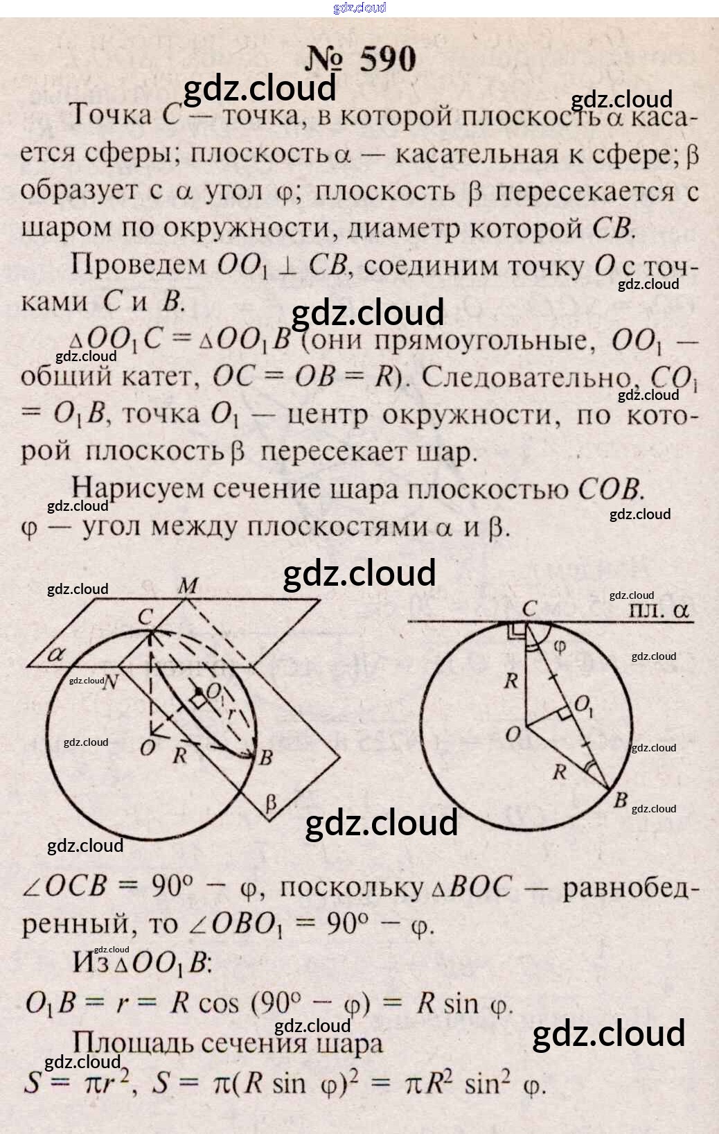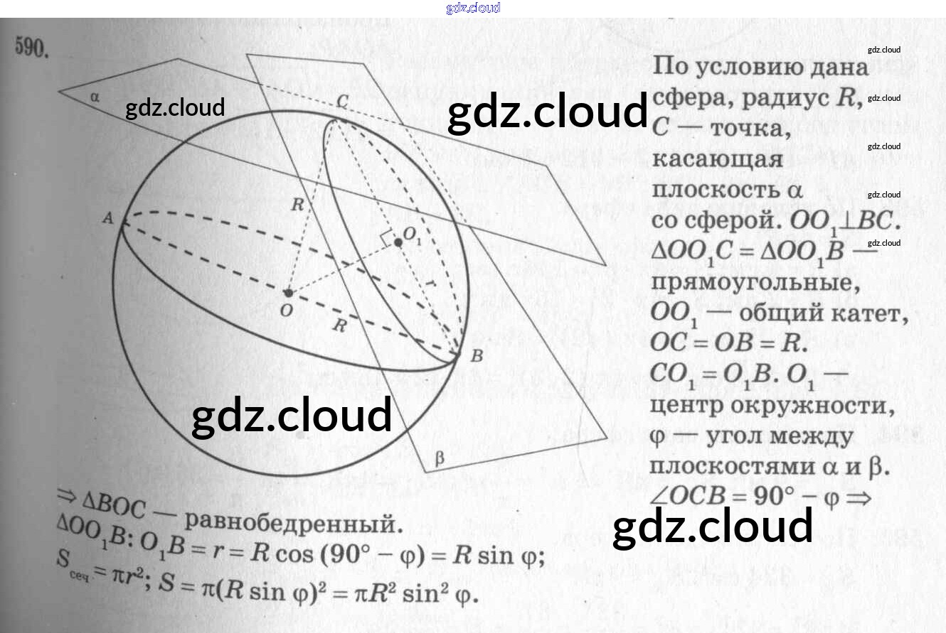 Ответ на задание 590 Учебник Геометрия  за 10, 11 (десятый, одиннадцатый) класс Атанасян, Бутузов, Кадомцев, Киселева, Позняк  Базовый и углубленный уровень 2015, 2023