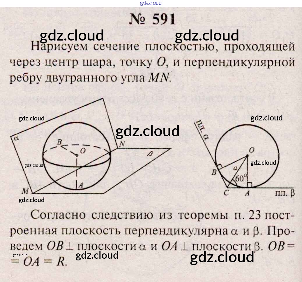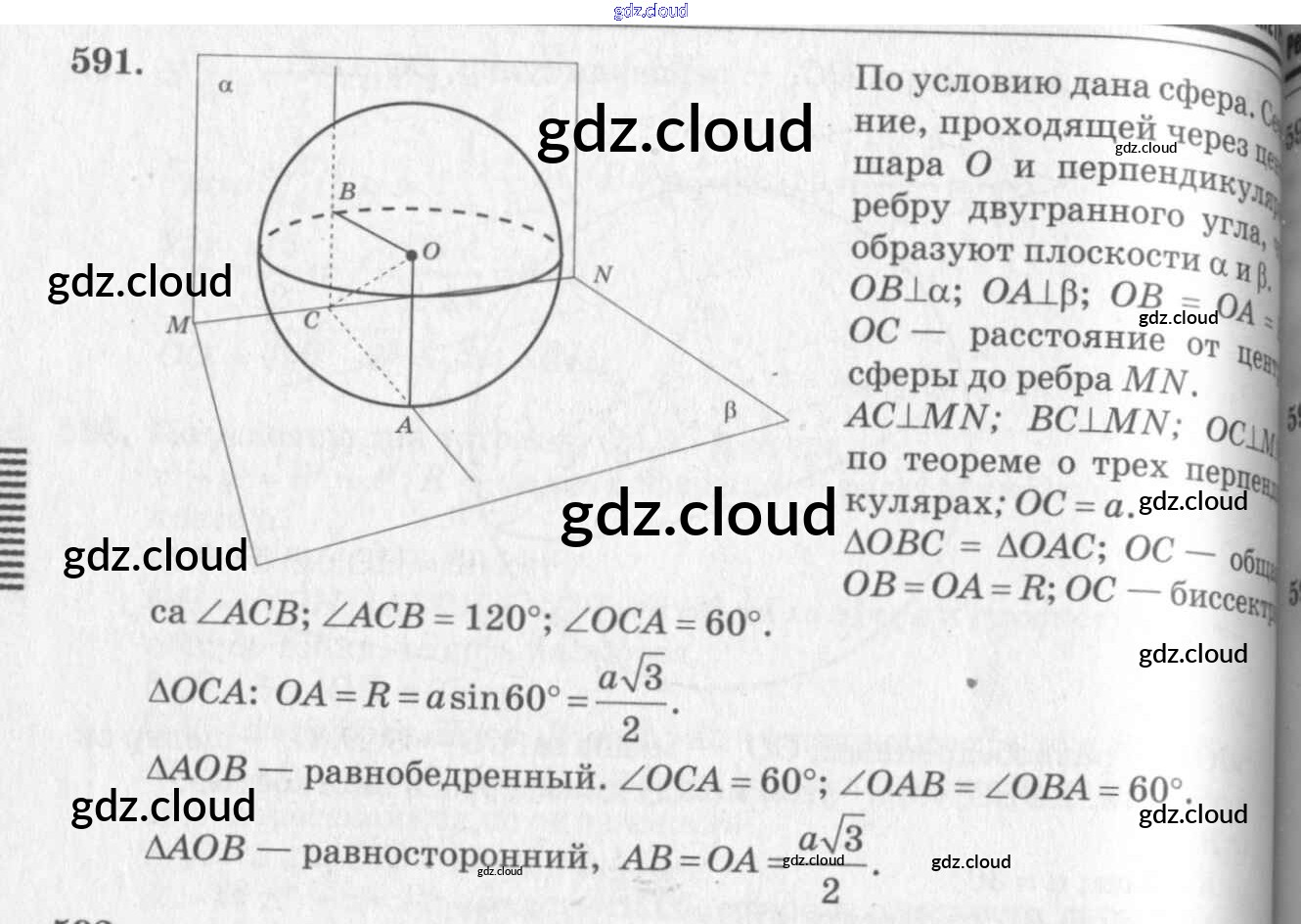 Ответ на задание 591 Учебник Геометрия  за 10, 11 (десятый, одиннадцатый) класс Атанасян, Бутузов, Кадомцев, Киселева, Позняк  Базовый и углубленный уровень 2015, 2023