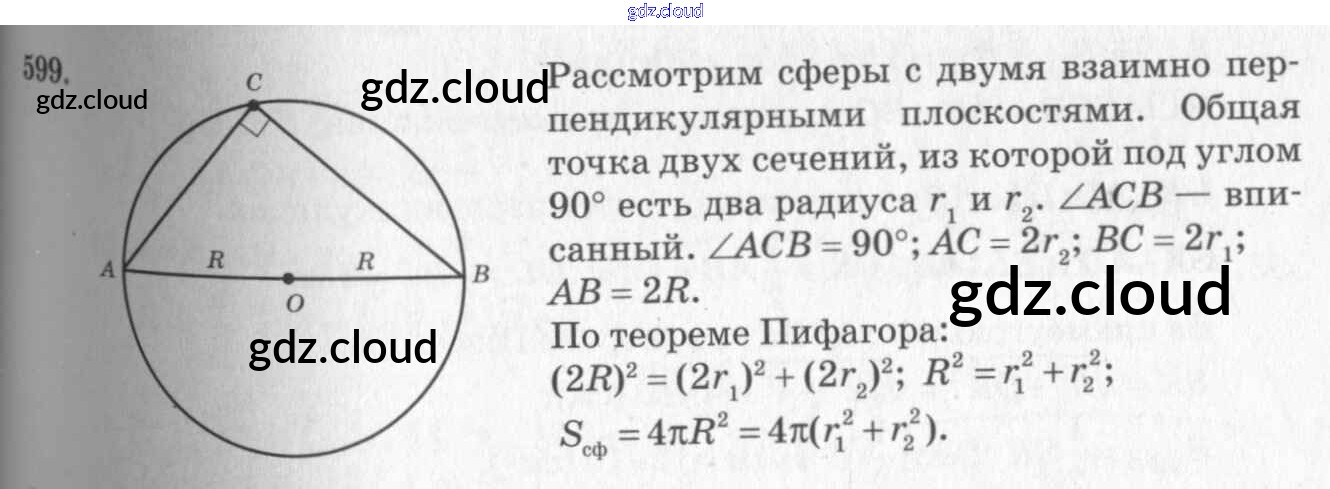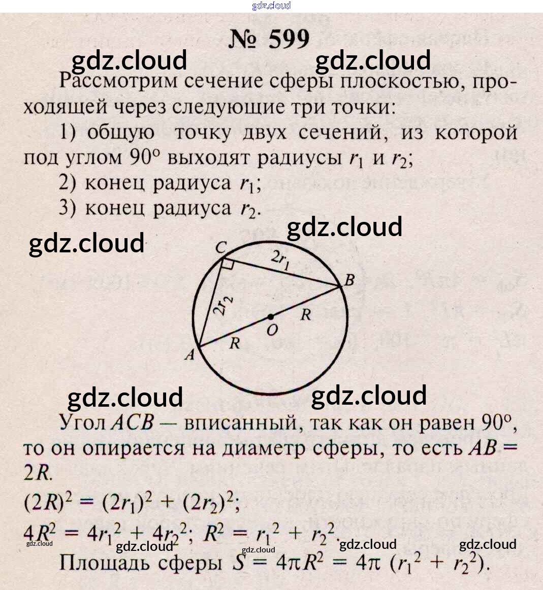 Ответ на задание 599 Учебник Геометрия  за 10, 11 (десятый, одиннадцатый) класс Атанасян, Бутузов, Кадомцев, Киселева, Позняк  Базовый и углубленный уровень 2015, 2023