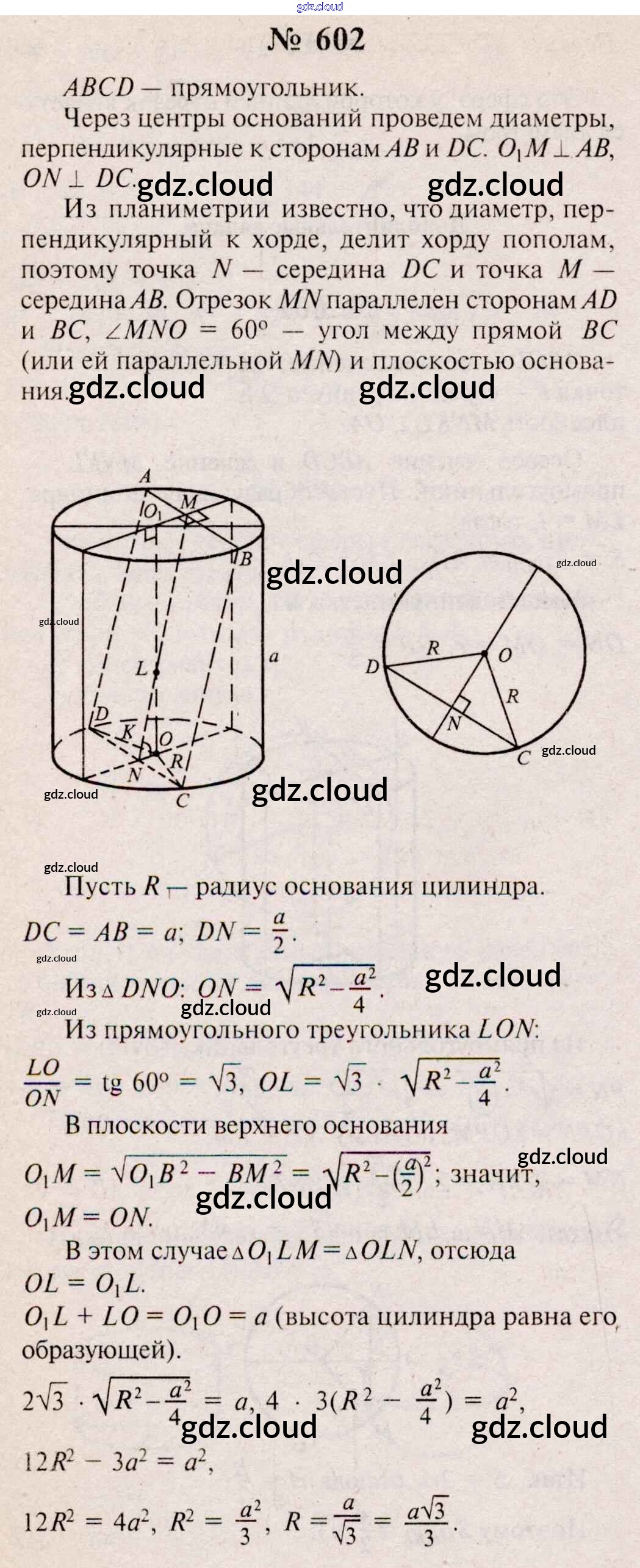Ответ на задание 602 Учебник Геометрия  за 10, 11 (десятый, одиннадцатый) класс Атанасян, Бутузов, Кадомцев, Киселева, Позняк  Базовый и углубленный уровень 2015, 2023