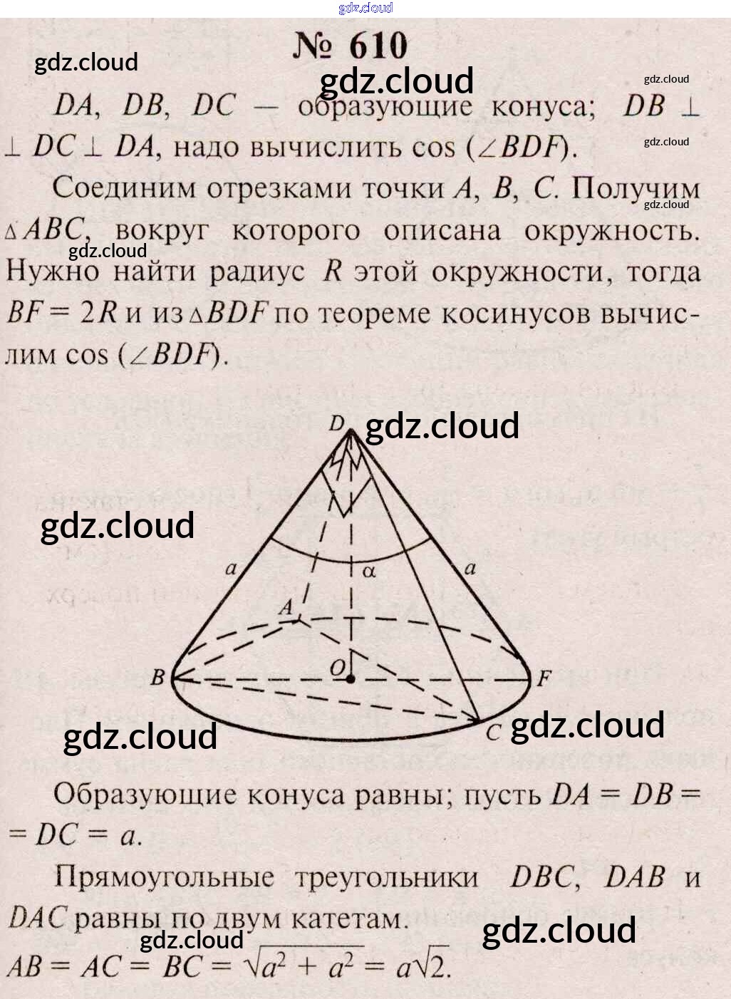 Ответ на задание 610 Учебник Геометрия  за 10, 11 (десятый, одиннадцатый) класс Атанасян, Бутузов, Кадомцев, Киселева, Позняк  Базовый и углубленный уровень 2015, 2023