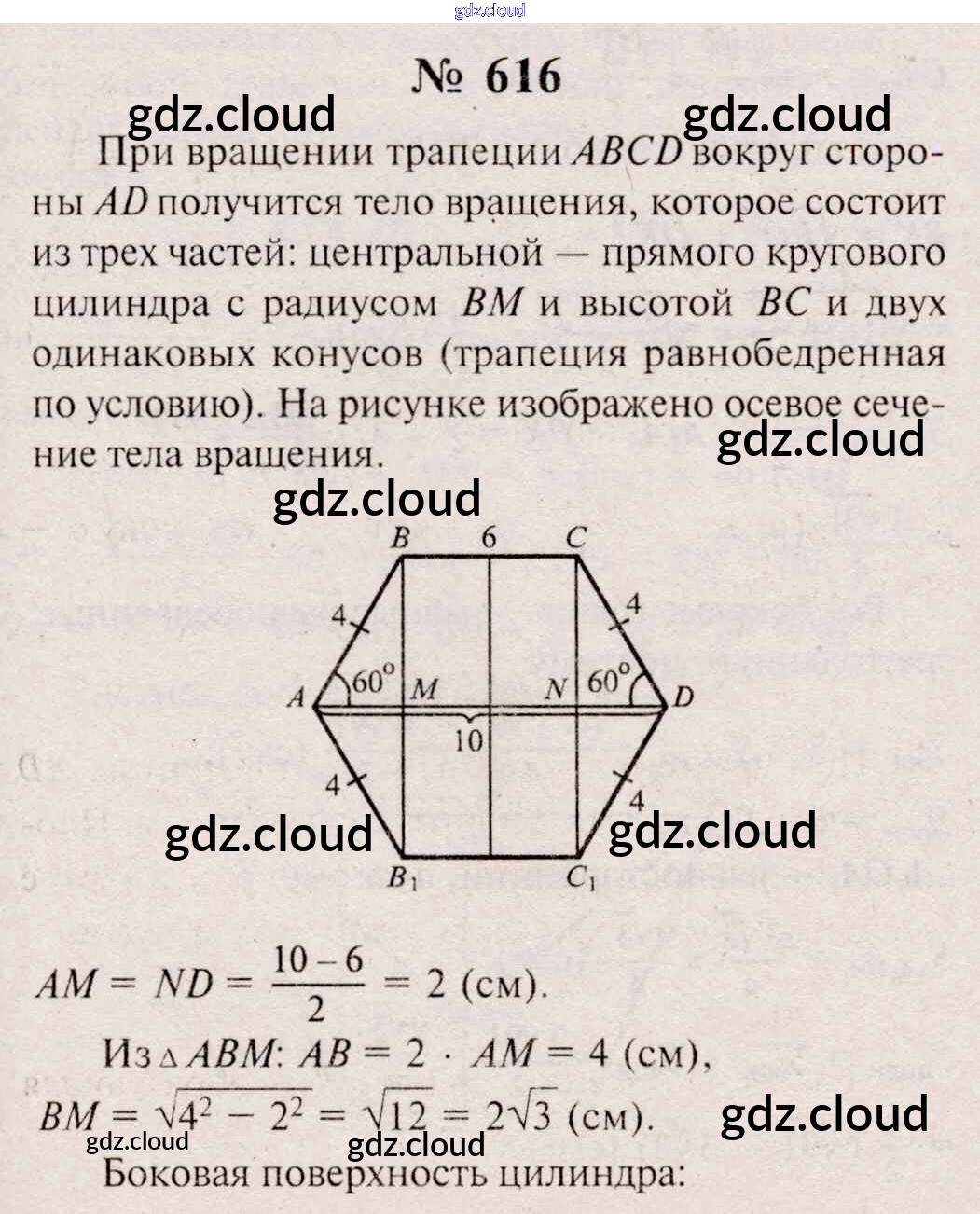 Ответ на задание 616 Учебник Геометрия  за 10, 11 (десятый, одиннадцатый) класс Атанасян, Бутузов, Кадомцев, Киселева, Позняк  Базовый и углубленный уровень 2015, 2023