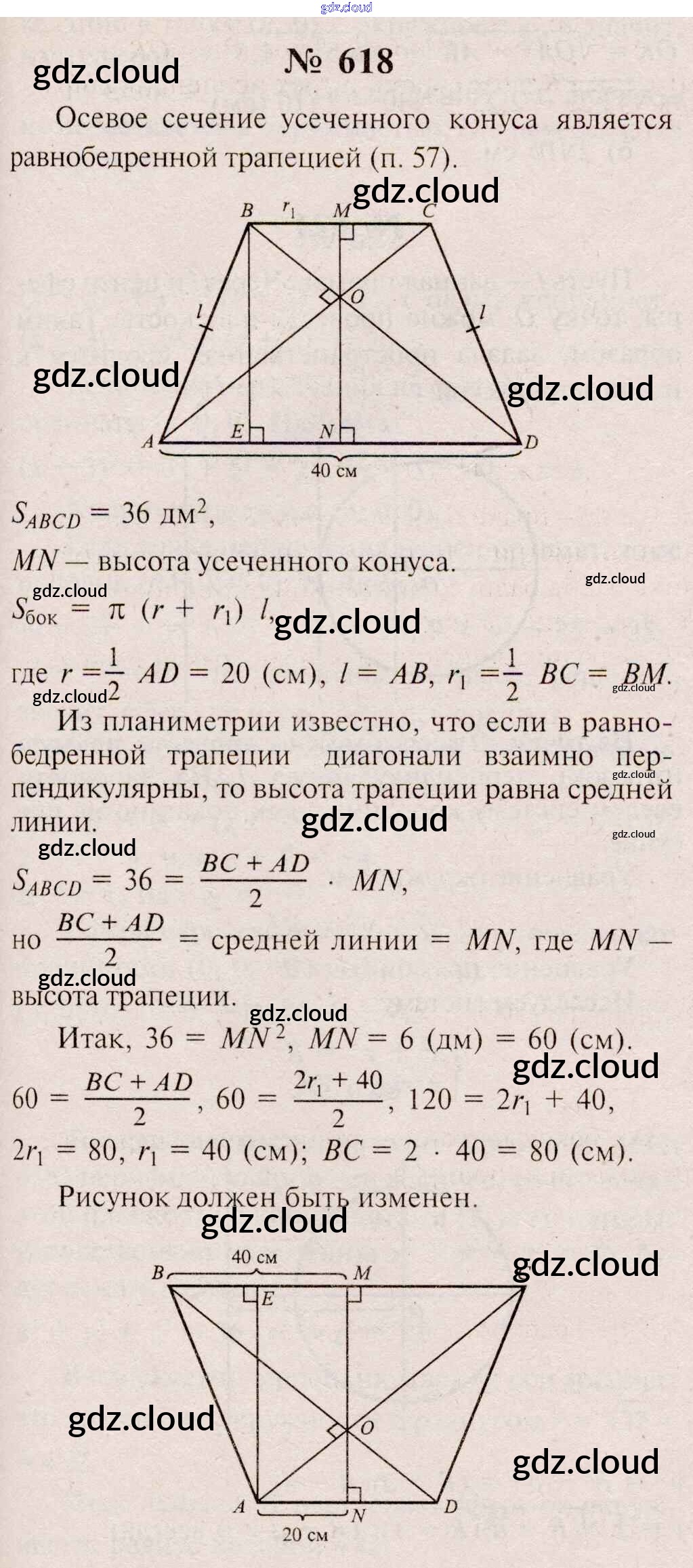 Ответ на задание 618 Учебник Геометрия  за 10, 11 (десятый, одиннадцатый) класс Атанасян, Бутузов, Кадомцев, Киселева, Позняк  Базовый и углубленный уровень 2015, 2023