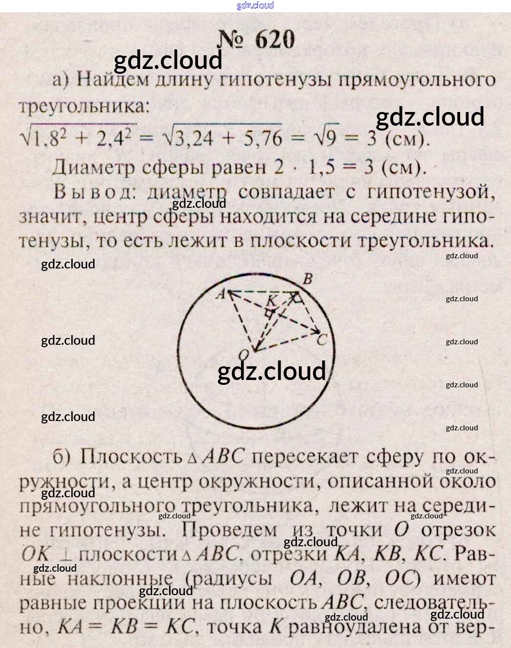 Ответ на задание 620 Учебник Геометрия  за 10, 11 (десятый, одиннадцатый) класс Атанасян, Бутузов, Кадомцев, Киселева, Позняк  Базовый и углубленный уровень 2015, 2023