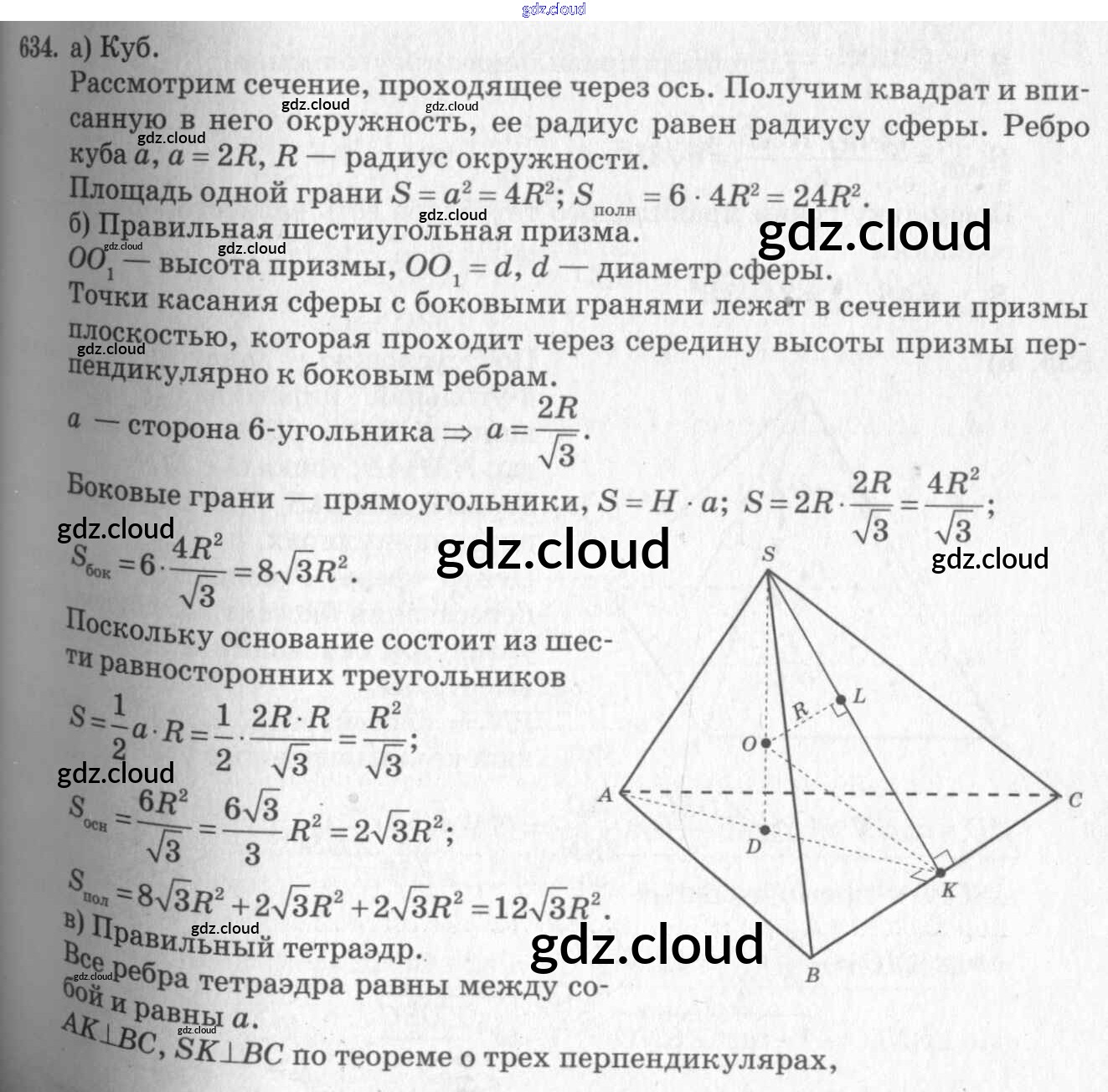 Ответ на задание 634 Учебник Геометрия  за 10, 11 (десятый, одиннадцатый) класс Атанасян, Бутузов, Кадомцев, Киселева, Позняк  Базовый и углубленный уровень 2015, 2023