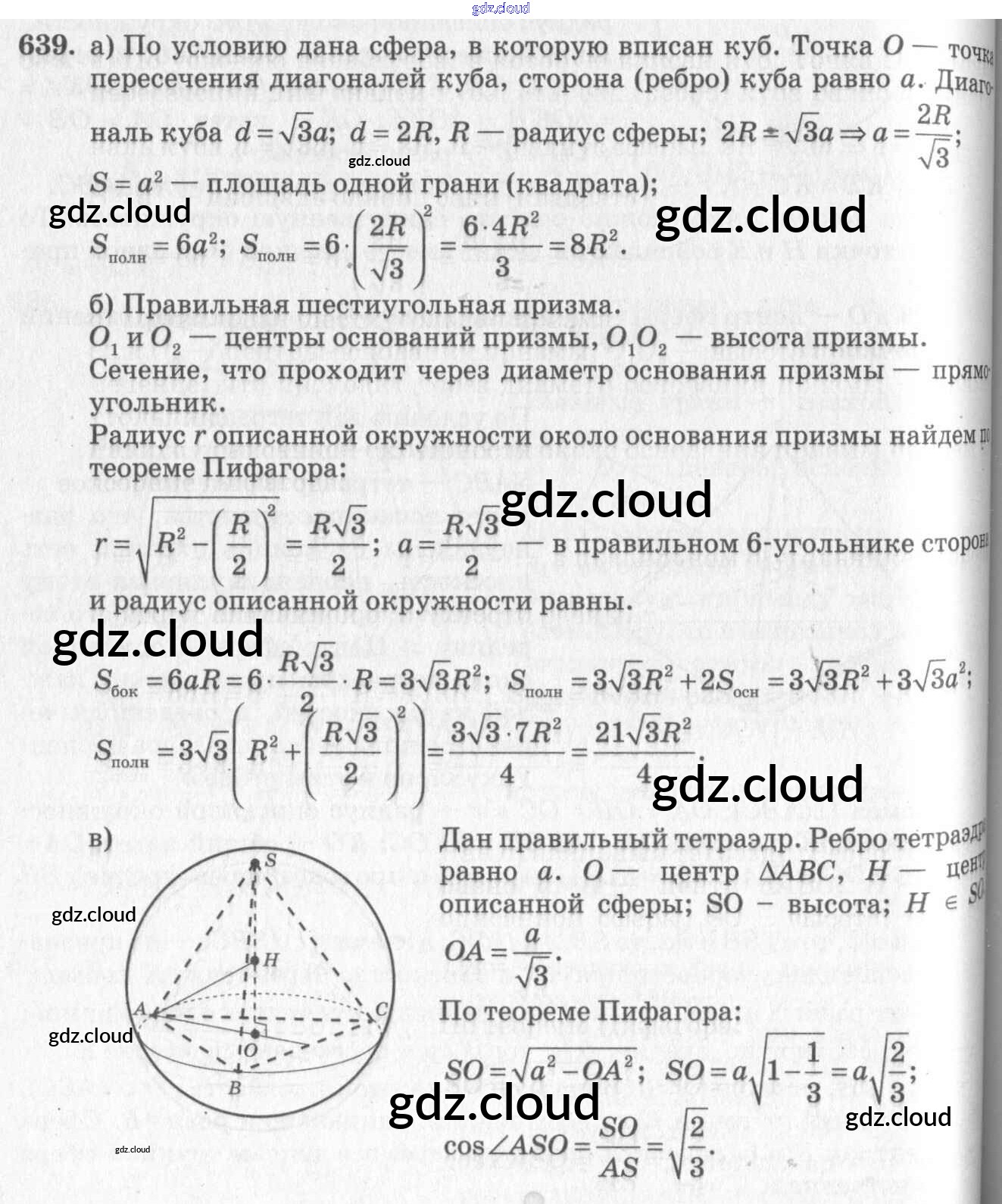 Ответ на задание 639 Учебник Геометрия  за 10, 11 (десятый, одиннадцатый) класс Атанасян, Бутузов, Кадомцев, Киселева, Позняк  Базовый и углубленный уровень 2015, 2023