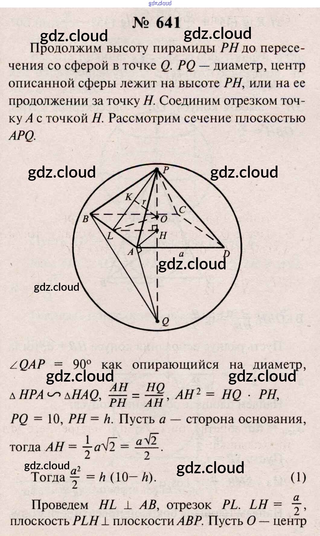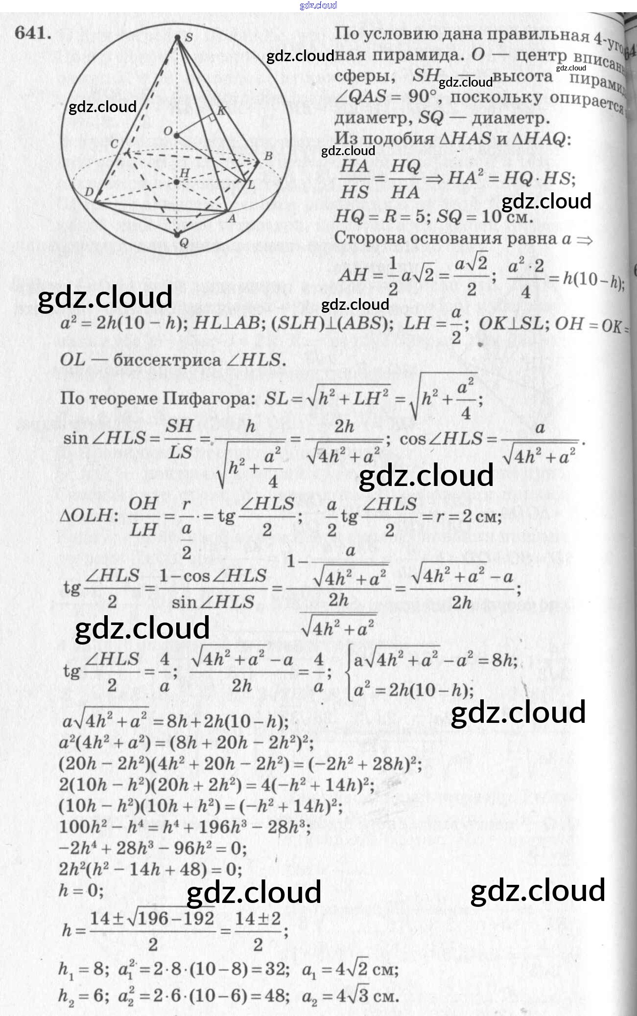 Ответ на задание 641 Учебник Геометрия  за 10, 11 (десятый, одиннадцатый) класс Атанасян, Бутузов, Кадомцев, Киселева, Позняк  Базовый и углубленный уровень 2015, 2023