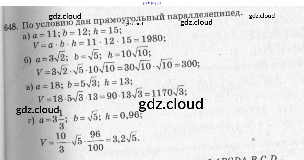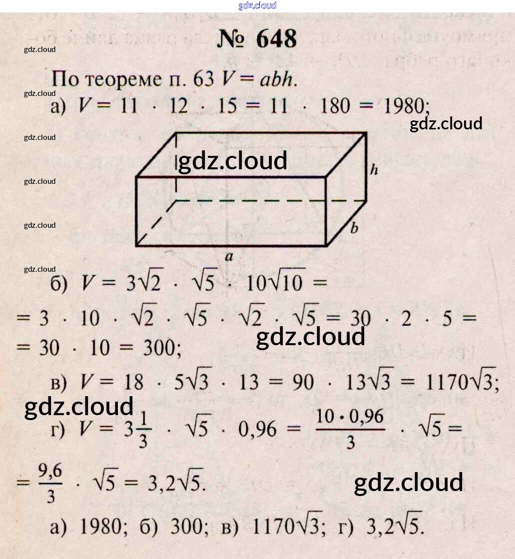 Ответ на задание 648 Учебник Геометрия  за 10, 11 (десятый, одиннадцатый) класс Атанасян, Бутузов, Кадомцев, Киселева, Позняк  Базовый и углубленный уровень 2015, 2023