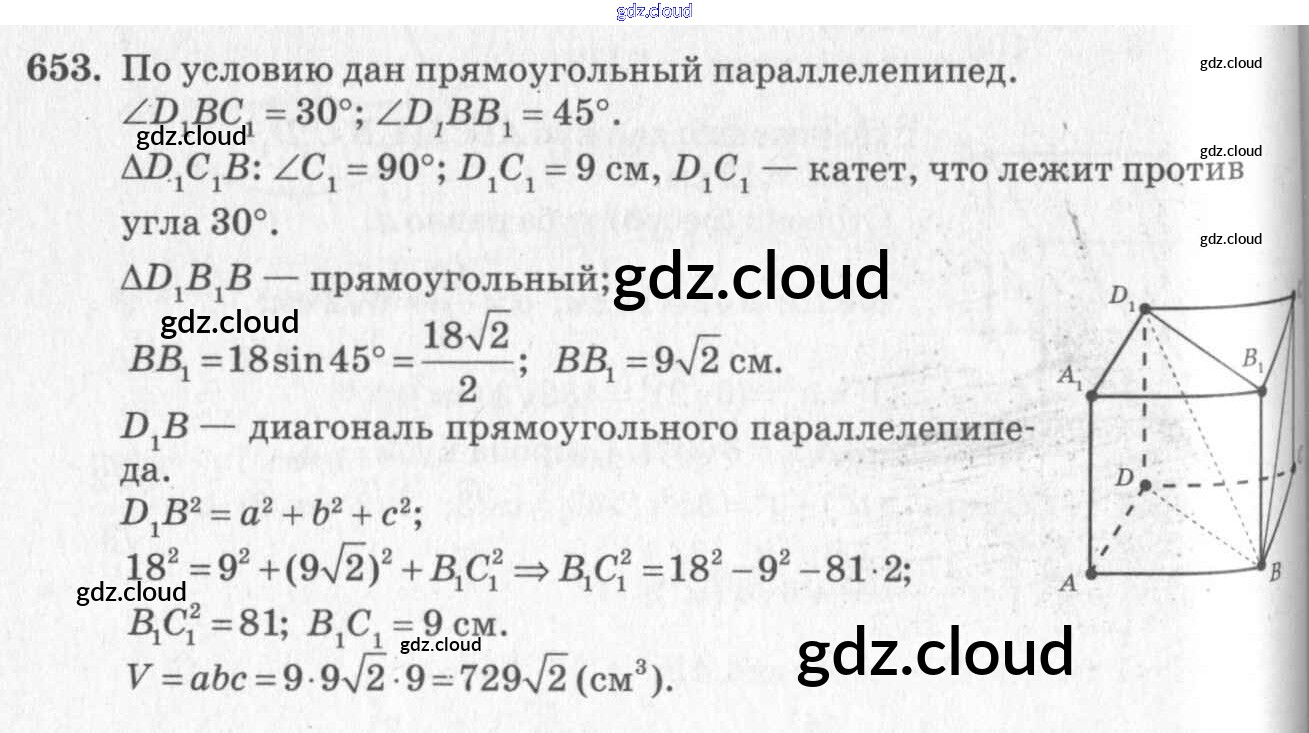 Ответ на задание 653 Учебник Геометрия  за 10, 11 (десятый, одиннадцатый) класс Атанасян, Бутузов, Кадомцев, Киселева, Позняк  Базовый и углубленный уровень 2015, 2023