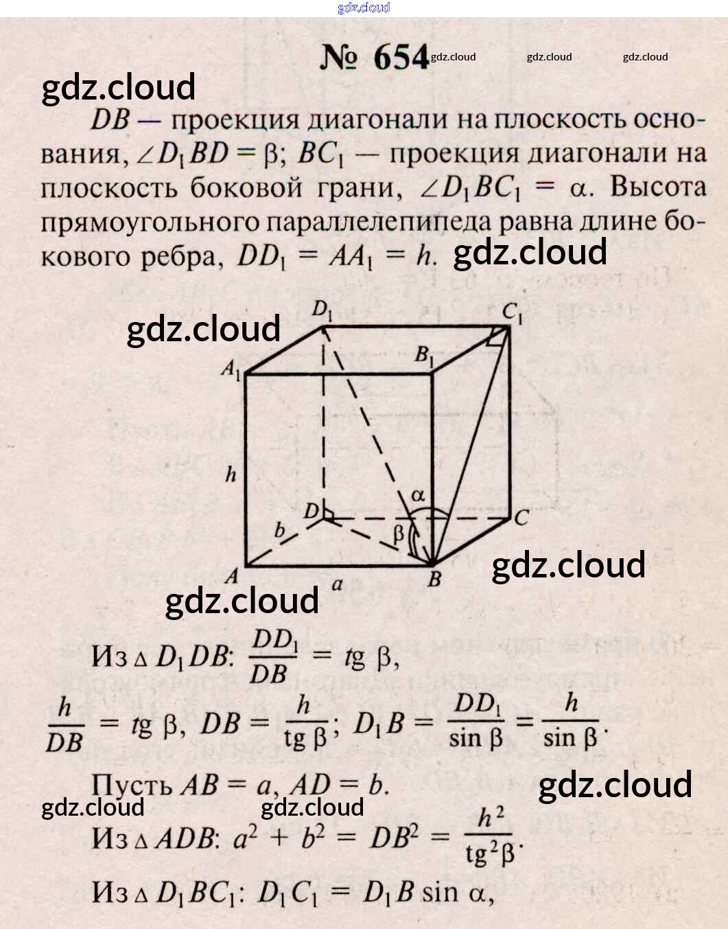 Ответ на задание 654 Учебник Геометрия  за 10, 11 (десятый, одиннадцатый) класс Атанасян, Бутузов, Кадомцев, Киселева, Позняк  Базовый и углубленный уровень 2015, 2023