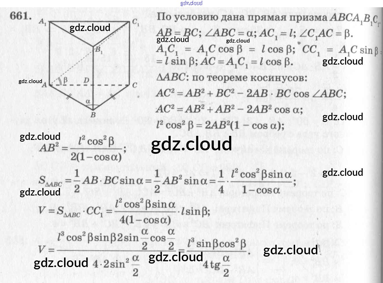 Ответ на задание 661 Учебник Геометрия  за 10, 11 (десятый, одиннадцатый) класс Атанасян, Бутузов, Кадомцев, Киселева, Позняк  Базовый и углубленный уровень 2015, 2023