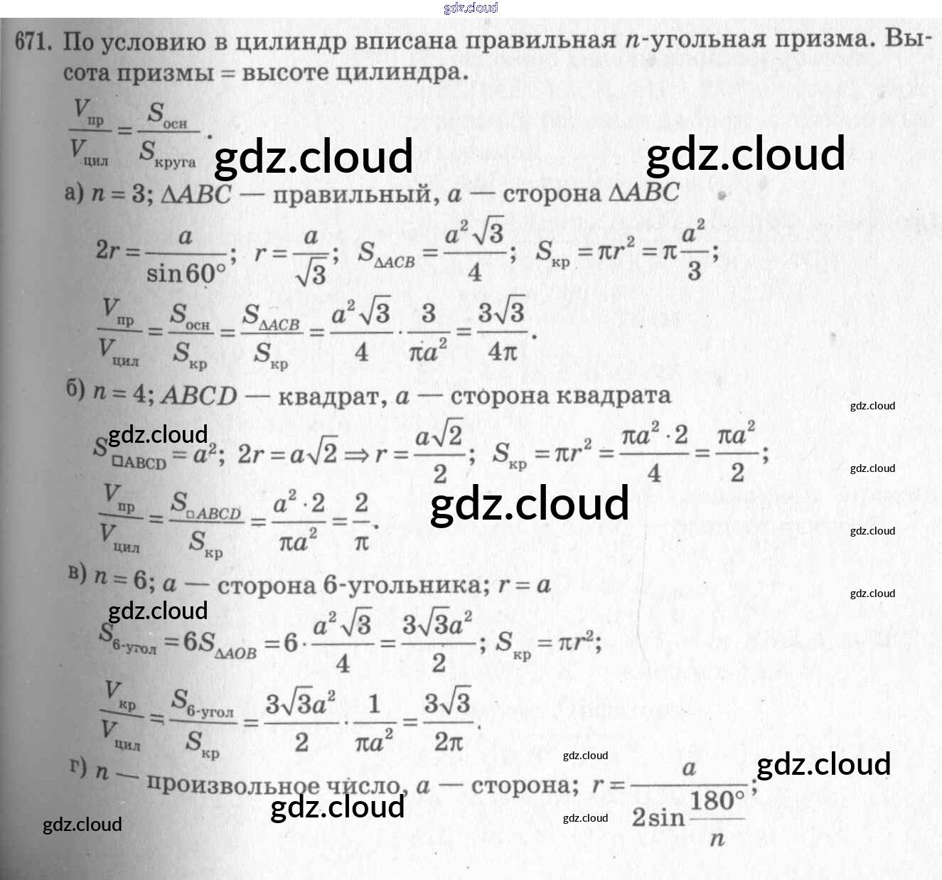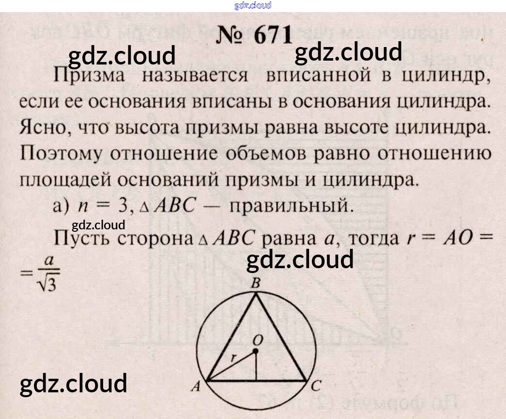 Ответ на задание 671 Учебник Геометрия  за 10, 11 (десятый, одиннадцатый) класс Атанасян, Бутузов, Кадомцев, Киселева, Позняк  Базовый и углубленный уровень 2015, 2023