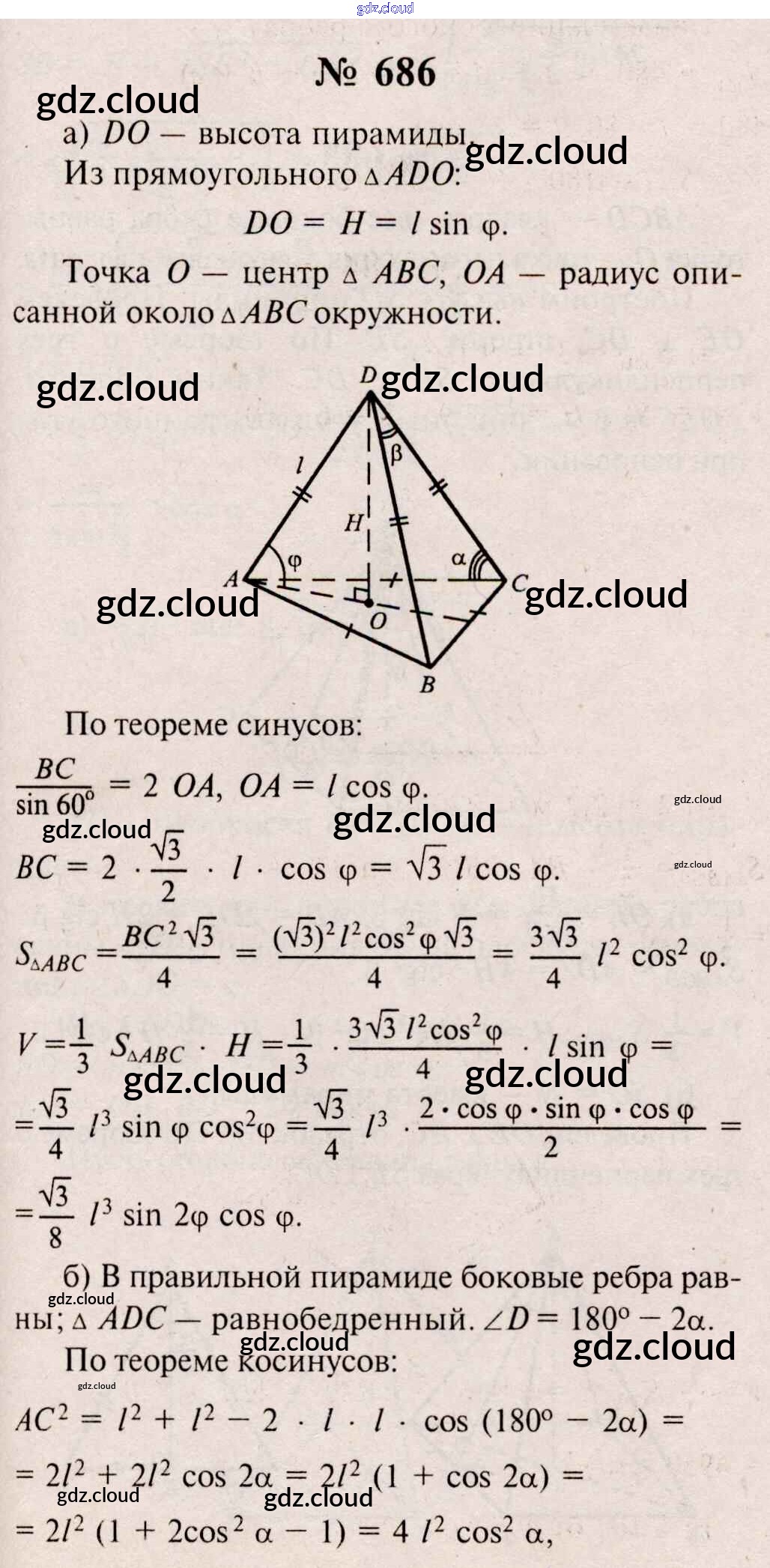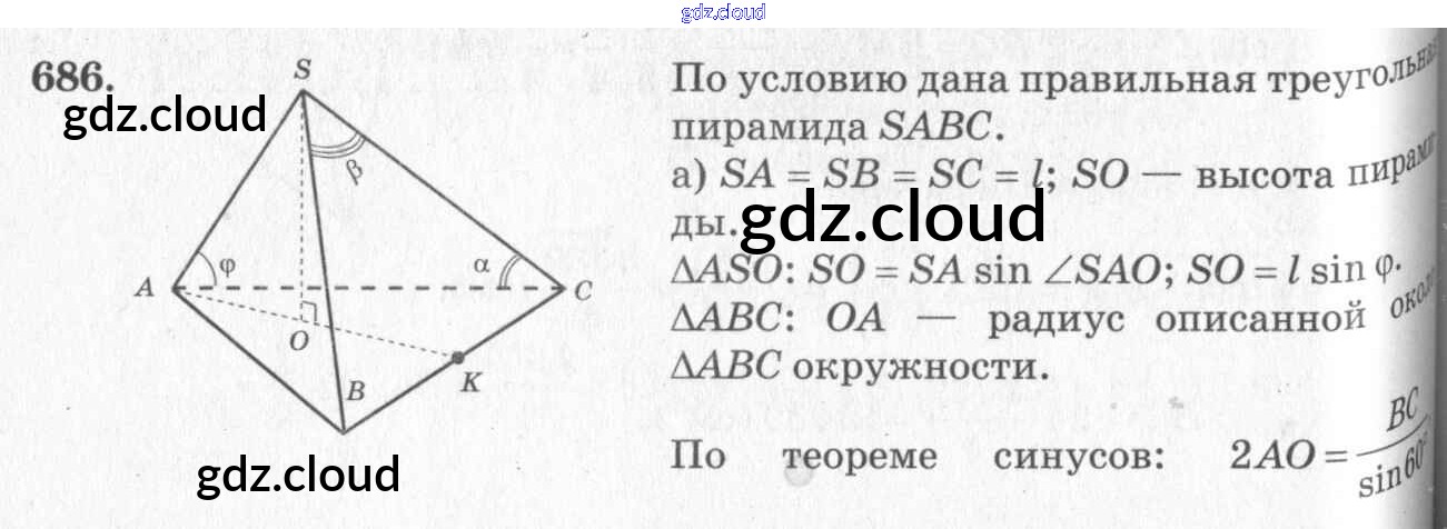 Ответ на задание 686 Учебник Геометрия  за 10, 11 (десятый, одиннадцатый) класс Атанасян, Бутузов, Кадомцев, Киселева, Позняк  Базовый и углубленный уровень 2015, 2023
