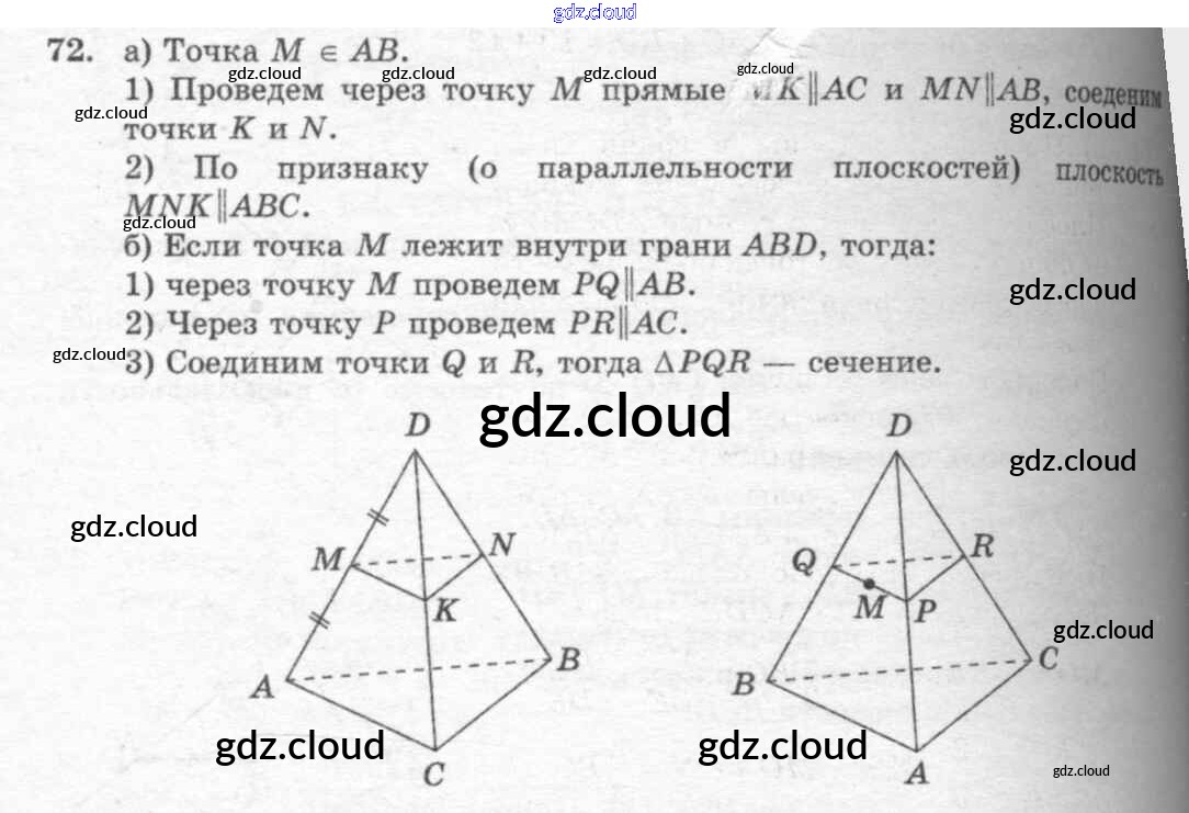 Ответ на задание 72 Учебник Геометрия  за 10, 11 (десятый, одиннадцатый) класс Атанасян, Бутузов, Кадомцев, Киселева, Позняк  Базовый и углубленный уровень 2015, 2023