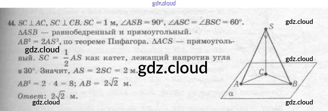 Ответ на задание 44 Учебник Геометрия за 10, 11 (десятый, одиннадцатый) класс Погорелов 2014 ФГОС онлайн и без номера телефона.