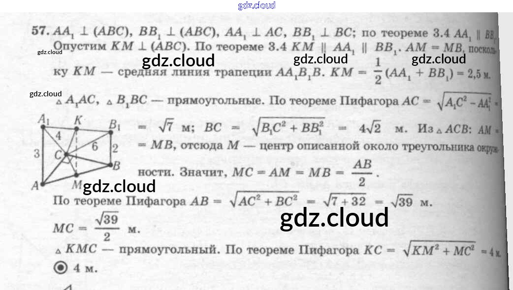 Ответ на задание 57 Учебник Геометрия за 10, 11 (десятый, одиннадцатый) класс Погорелов 2014 ФГОС онлайн и без номера телефона.