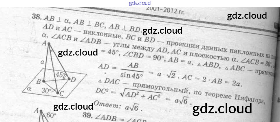Ответ на задание 38 Учебник Геометрия за 10, 11 (десятый, одиннадцатый) класс Погорелов 2014 ФГОС онлайн и без номера телефона.