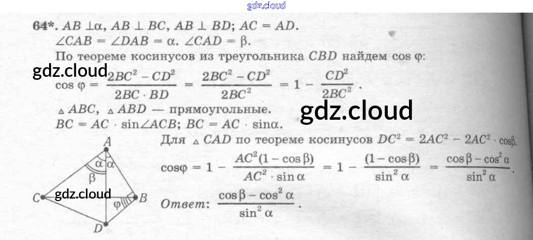 Ответ на задание 64 Учебник Геометрия за 10, 11 (десятый, одиннадцатый) класс Погорелов 2014 ФГОС онлайн и без номера телефона.