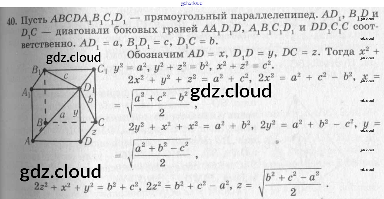 Ответ на задание 40 Учебник Геометрия за 10, 11 (десятый, одиннадцатый) класс Погорелов 2014 ФГОС онлайн и без номера телефона.
