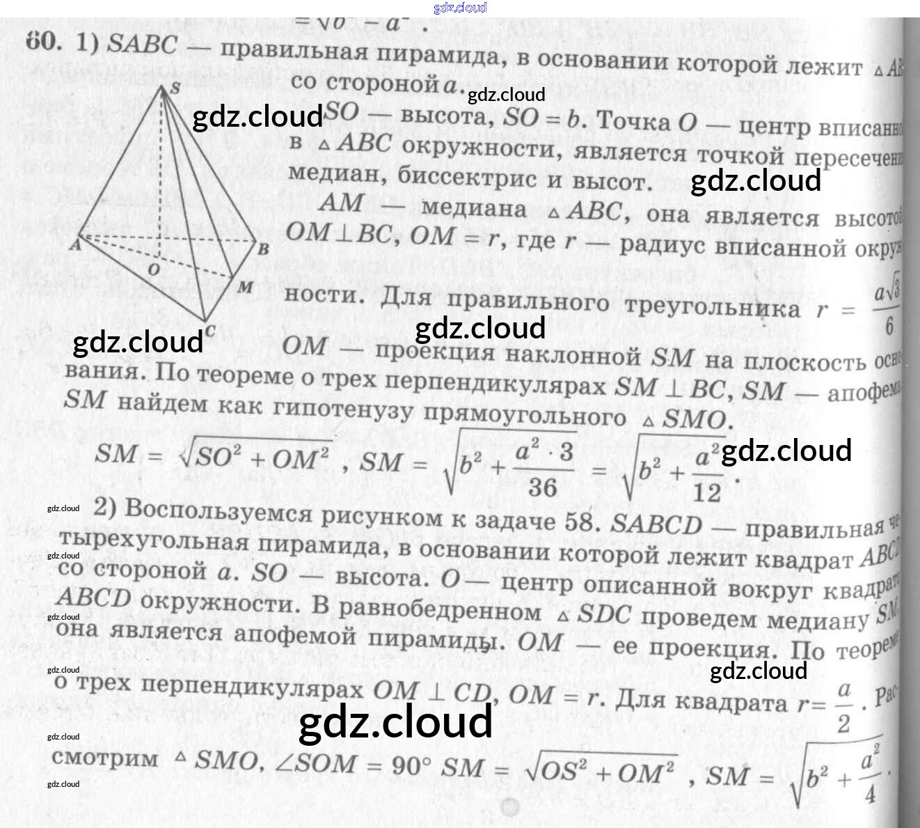 Ответ на задание 60 Учебник Геометрия за 10, 11 (десятый, одиннадцатый) класс Погорелов 2014 ФГОС онлайн и без номера телефона.