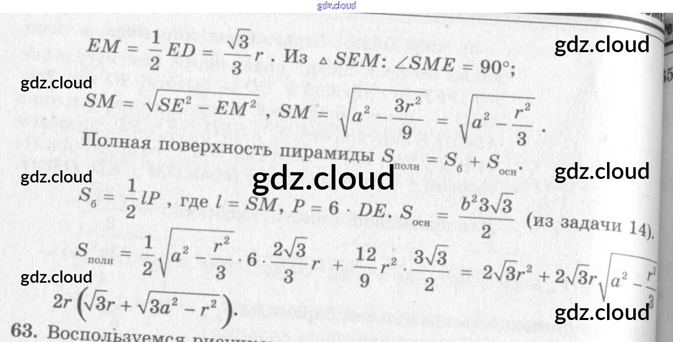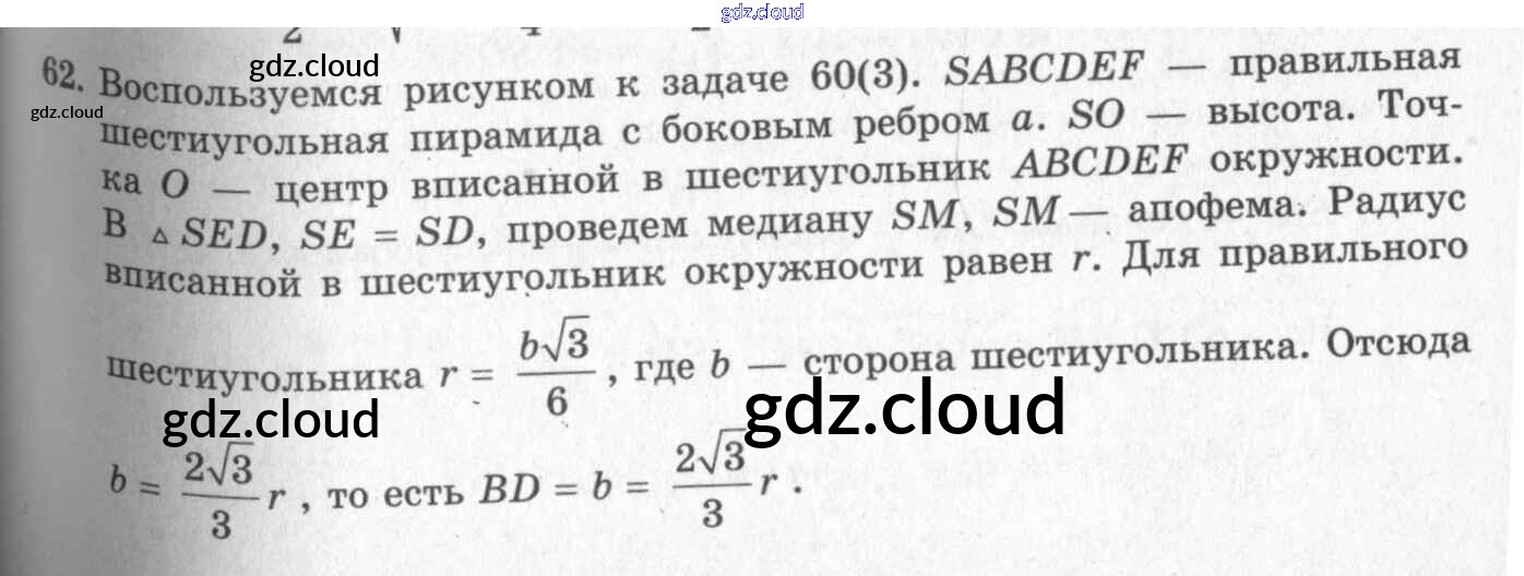 Ответ на задание 62 Учебник Геометрия за 10, 11 (десятый, одиннадцатый) класс Погорелов 2014 ФГОС онлайн и без номера телефона.