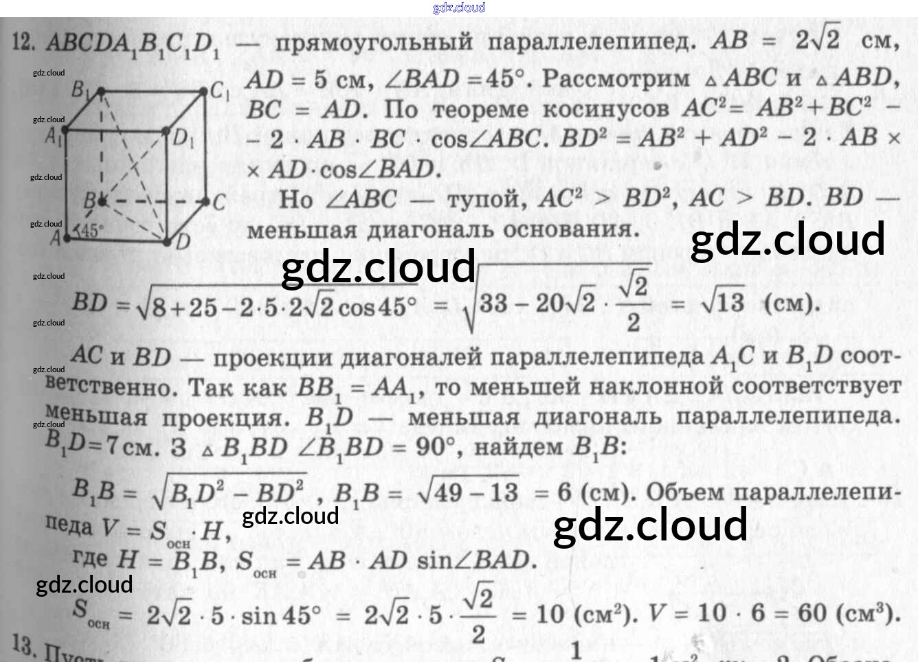 Ответ на задание 12 Учебник Геометрия за 10, 11 (десятый, одиннадцатый) класс Погорелов 2014 ФГОС онлайн и без номера телефона.