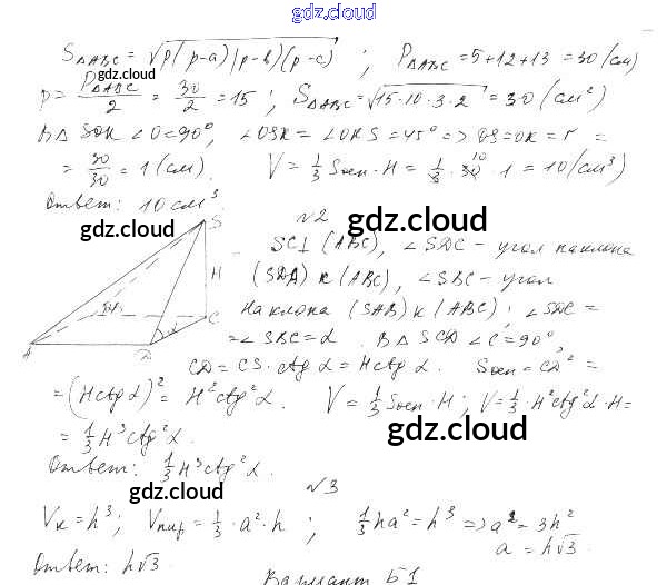 СР-24. Варианты Самостоятельные работы по Геометрии 11 класс Самостоятельные и контрольные работы Ершова    Илекса