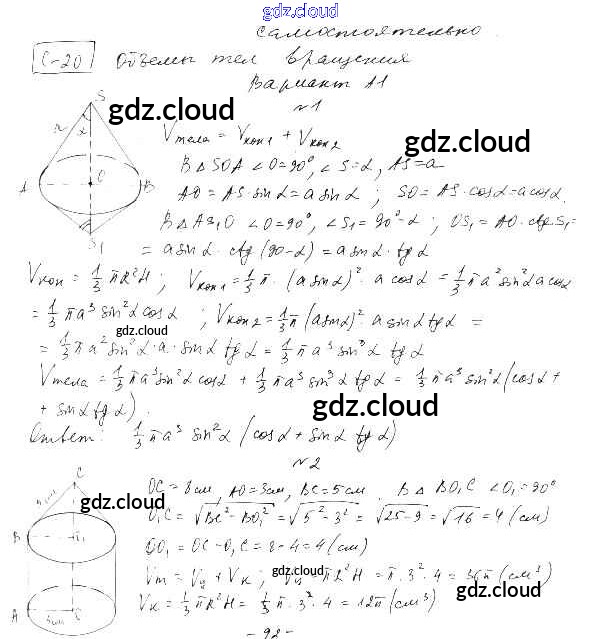 СР-20. Варианты Самостоятельные работы по Геометрии 11 класс Самостоятельные и контрольные работы Ершова    Илекса