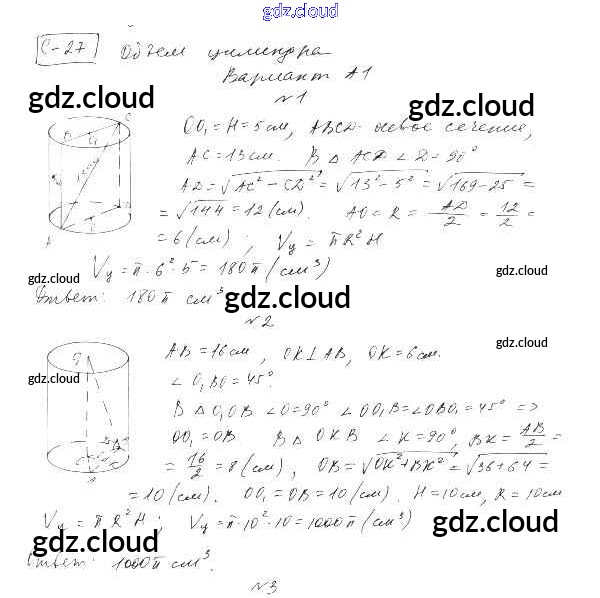 СР-27. Варианты Самостоятельные работы по Геометрии 11 класс Самостоятельные и контрольные работы Ершова    Илекса
