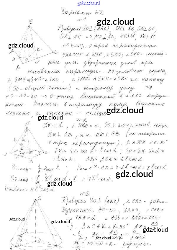 Ответ на задание Б2 Самостоятельные и контрольные работы Геометрия  за 11 (одиннадцатый) класс Ершова, Голобородько   2004