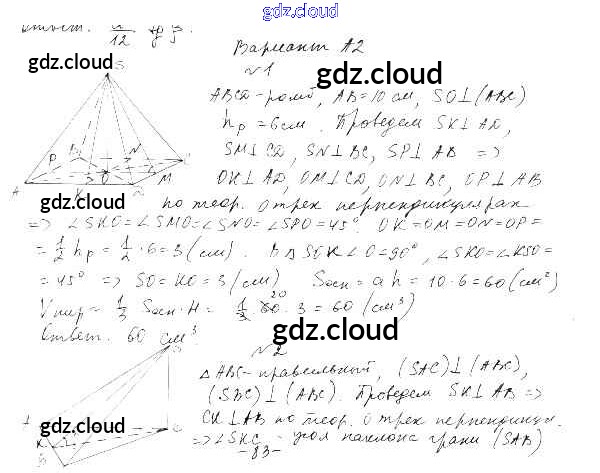 СР-17. Варианты Самостоятельные работы по Геометрии 11 класс Самостоятельные и контрольные работы Ершова    Илекса