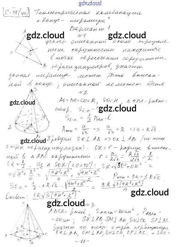 СР-18(40). Варианты Самостоятельные работы по Геометрии 11 класс Самостоятельные и контрольные работы Ершова    Илекса