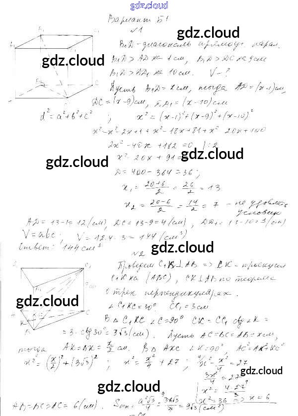 СР-13. Варианты Самостоятельные работы по Геометрии 11 класс Самостоятельные и контрольные работы Ершова    Илекса